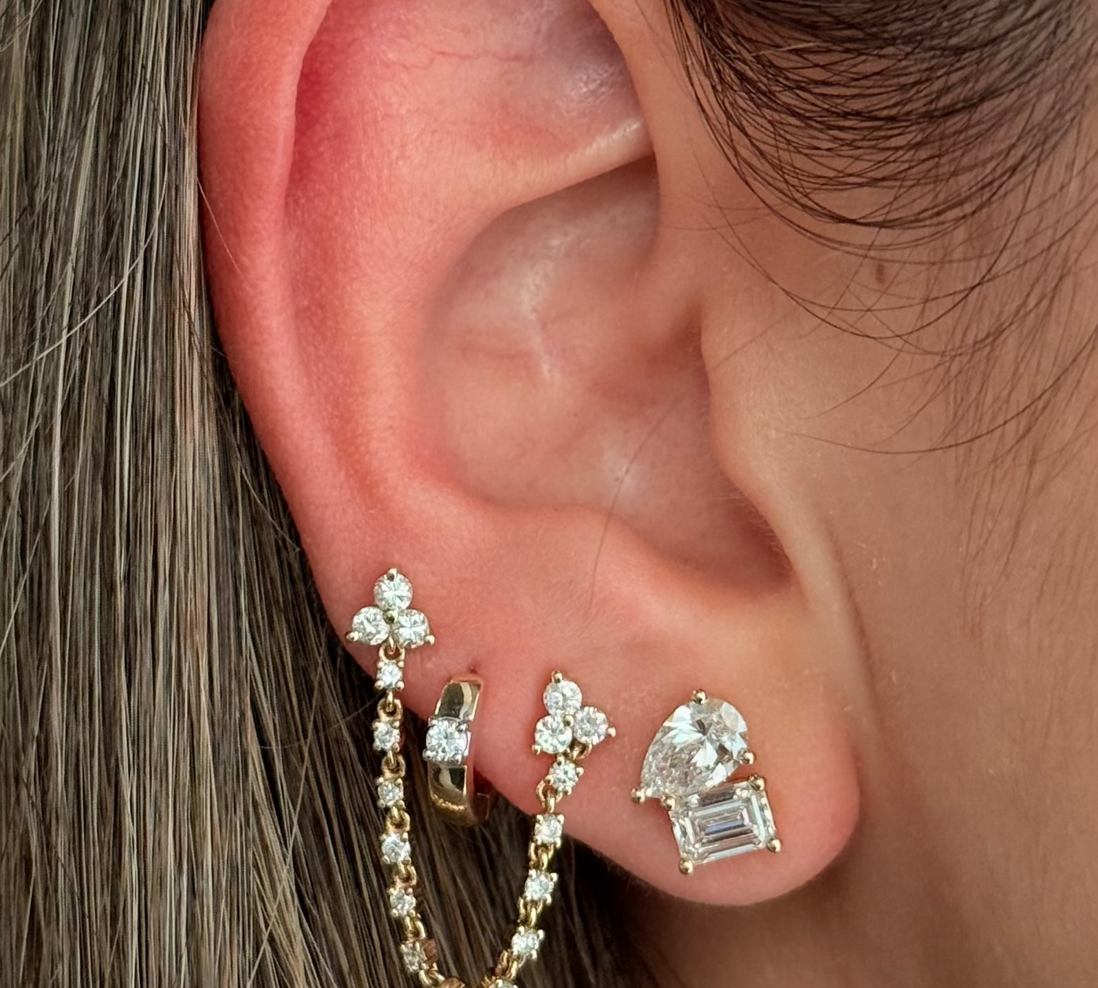 At Monisha Melwani, we offer fine stud and hoop earrings, perfect for earring piercings. Discover our selection of fine jewelry and book a piercing party in Miami.