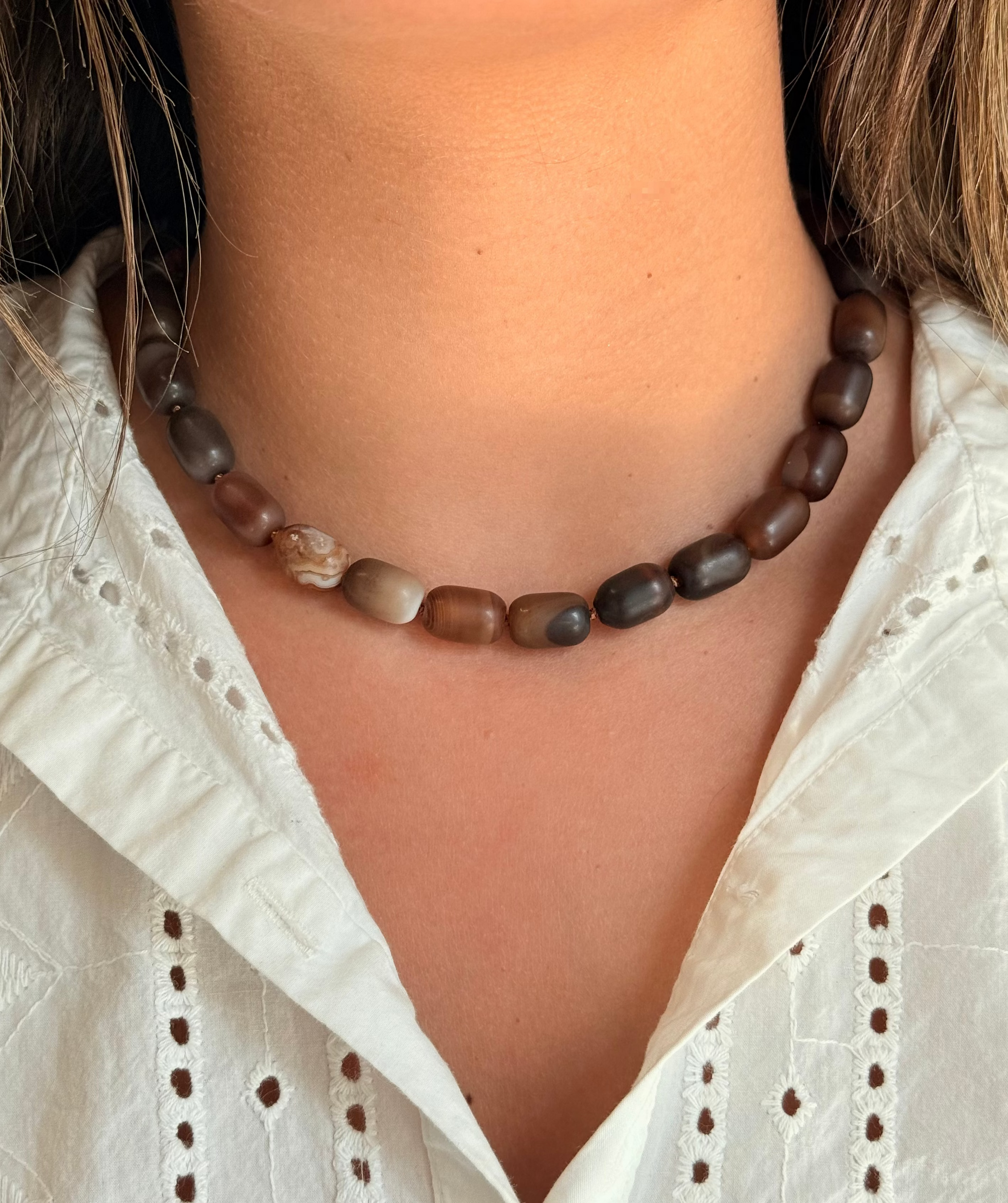 The first necklace sets the foundation for your layered look. A thin choker or a delicate chain is a great place to start. Some days, this might be all you need!