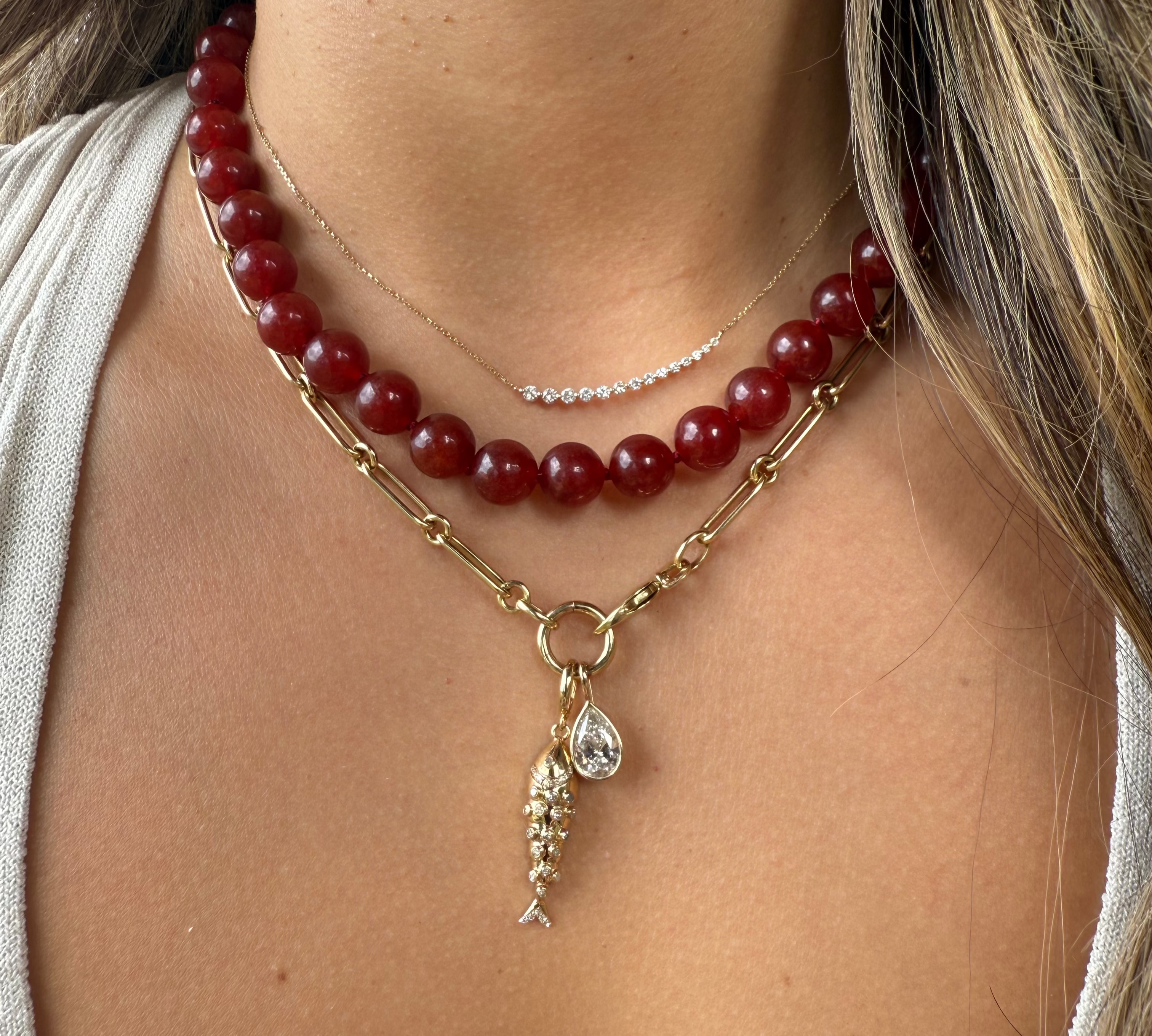 • A little sparkle – A simple chain paired with one that has gemstones or beads adds depth.