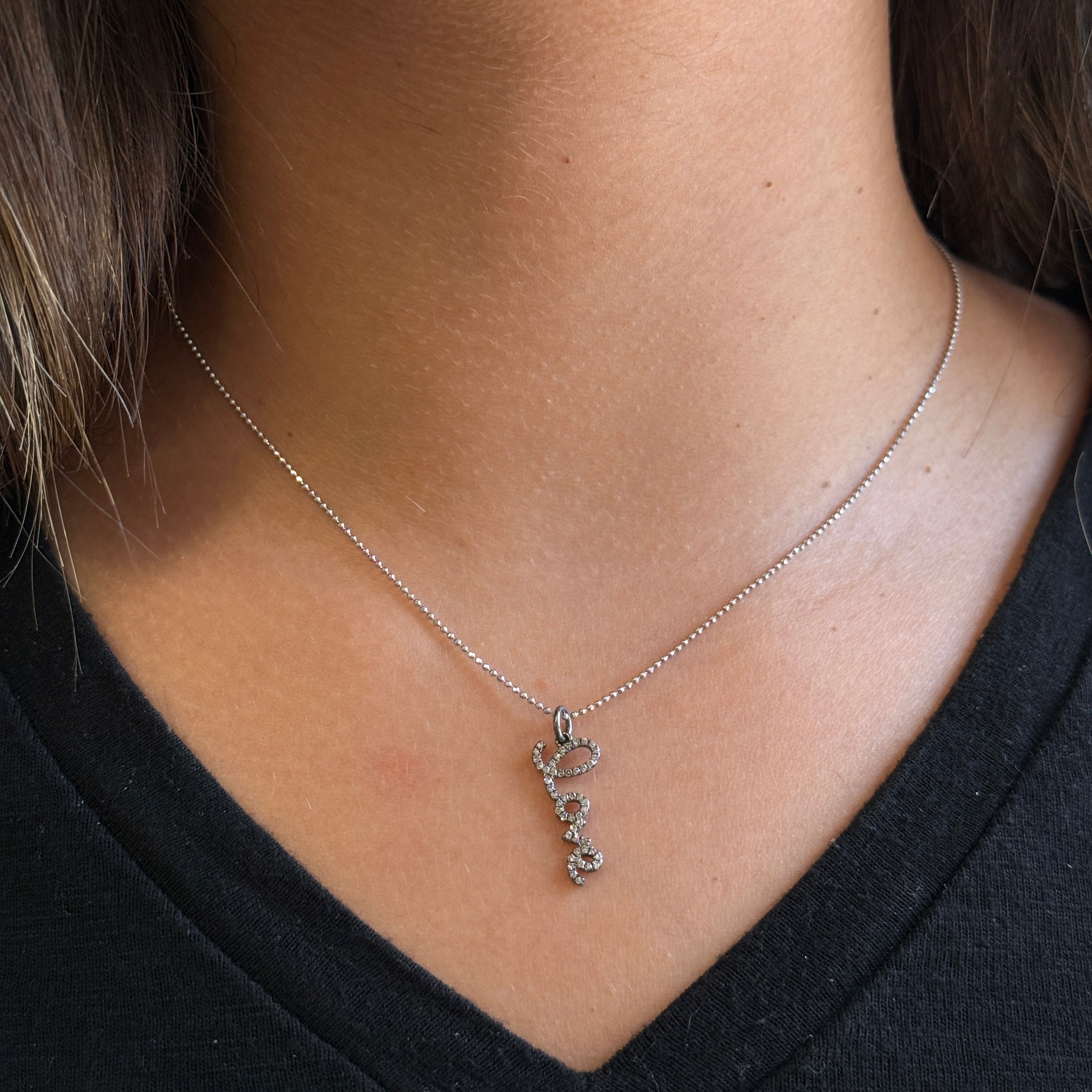 This Sterling Silver Tiny Diamond Love Charm Pendant features diamonds set in 14k sterling silver.