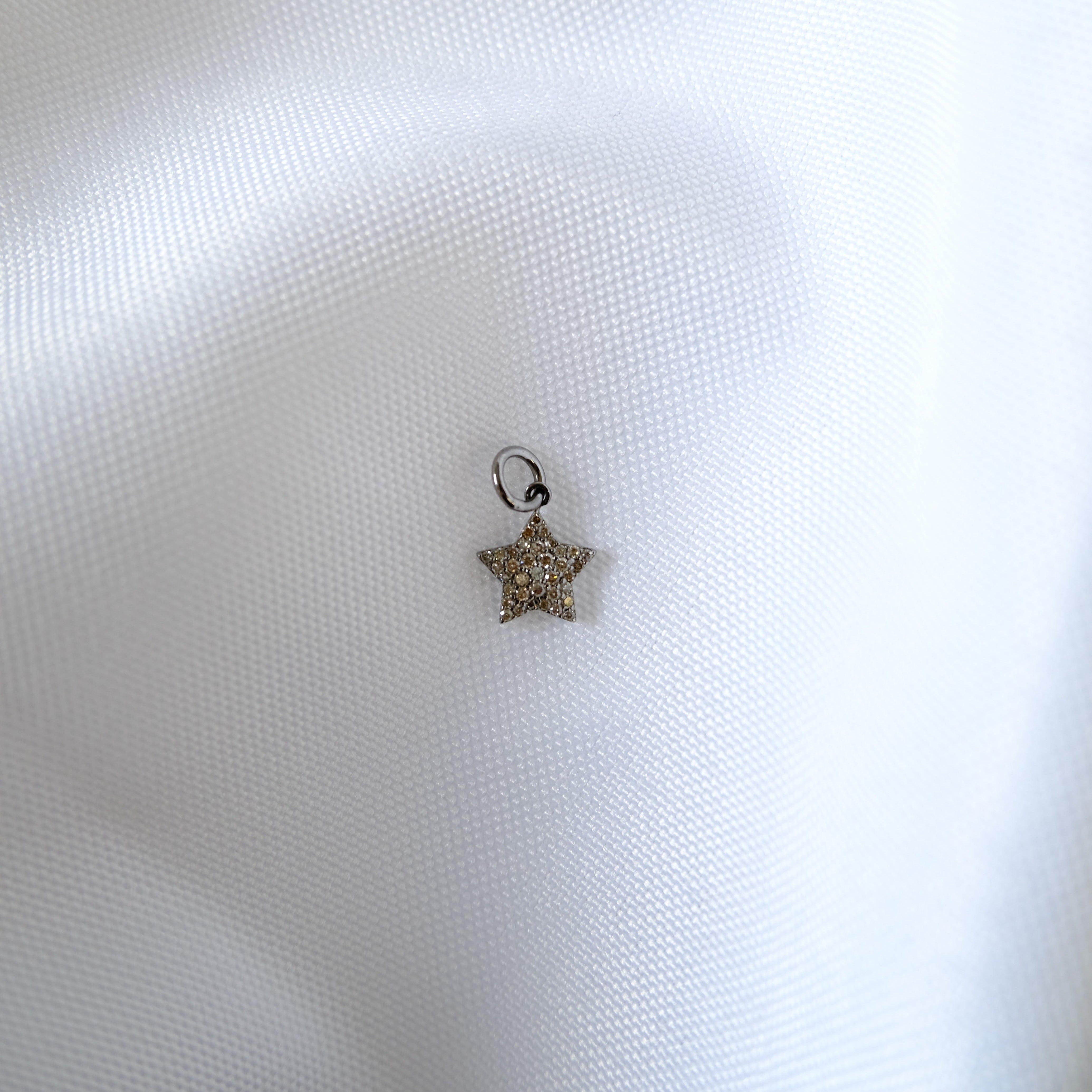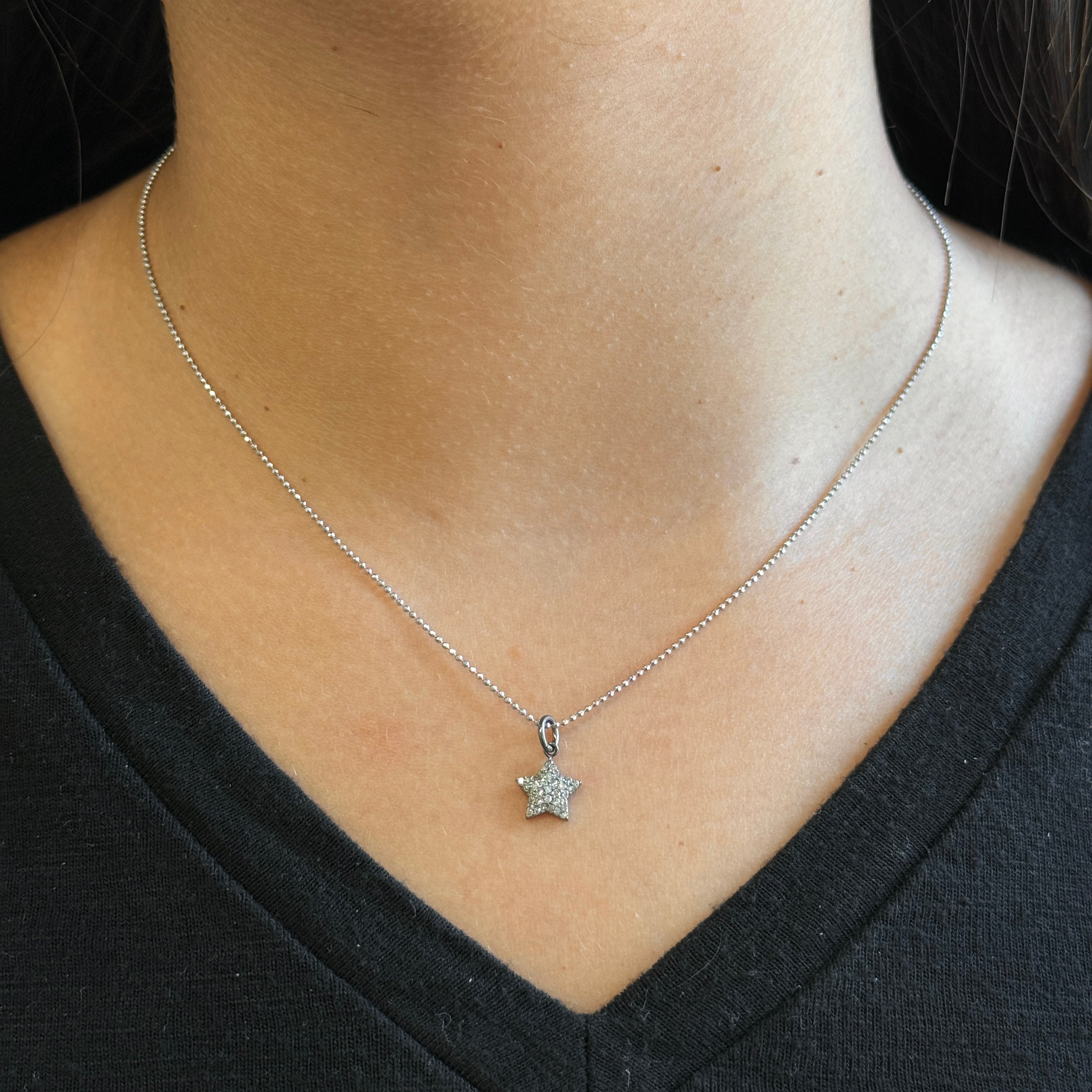 This Sterling Silver Pave Diamond Star Charm Pendant features diamonds set in 14k Sterling Silver.