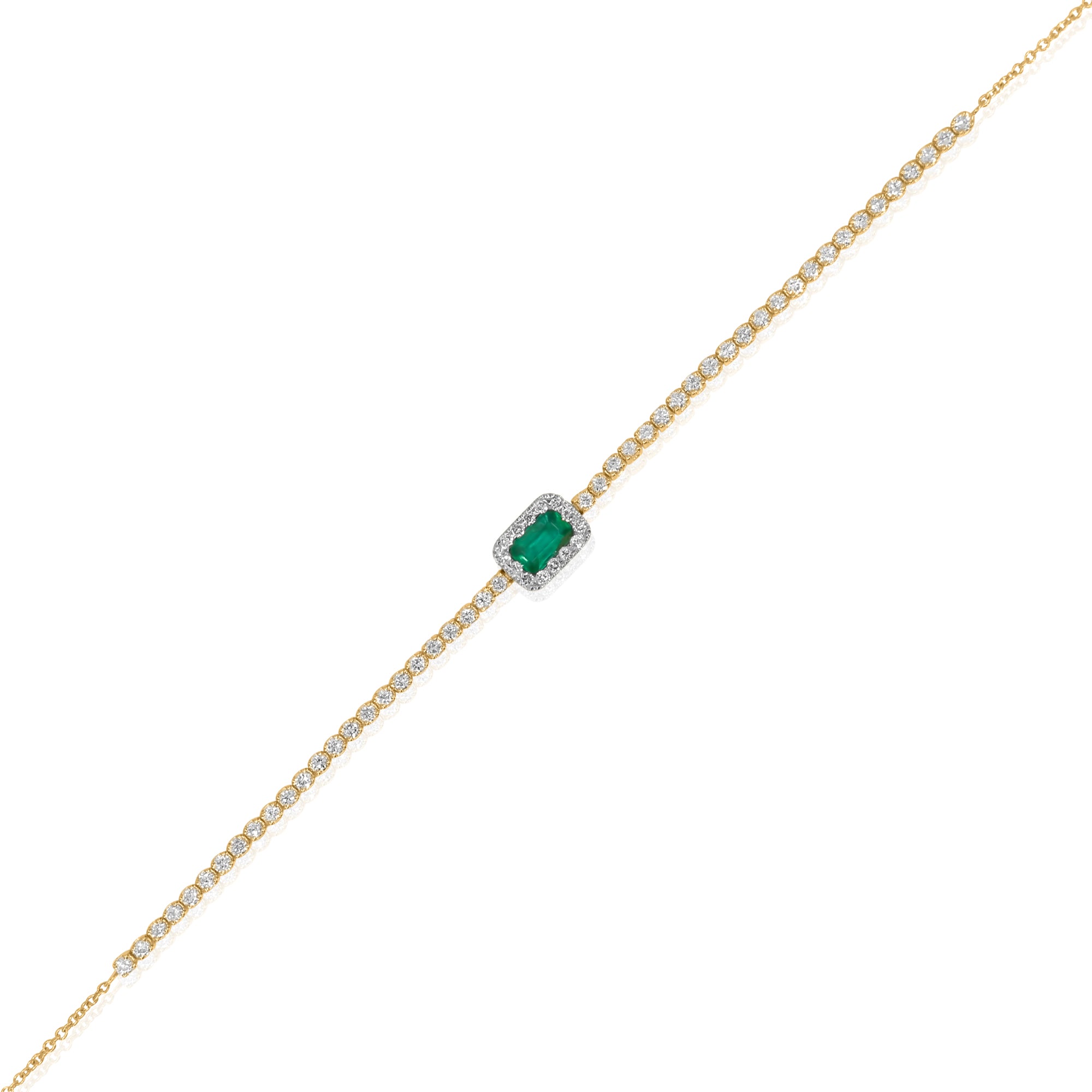 This Gold Rectangle Emerald and Diamond Half Tennis Bracelet features emeralds and diamonds set in 18k Yellow Gold.