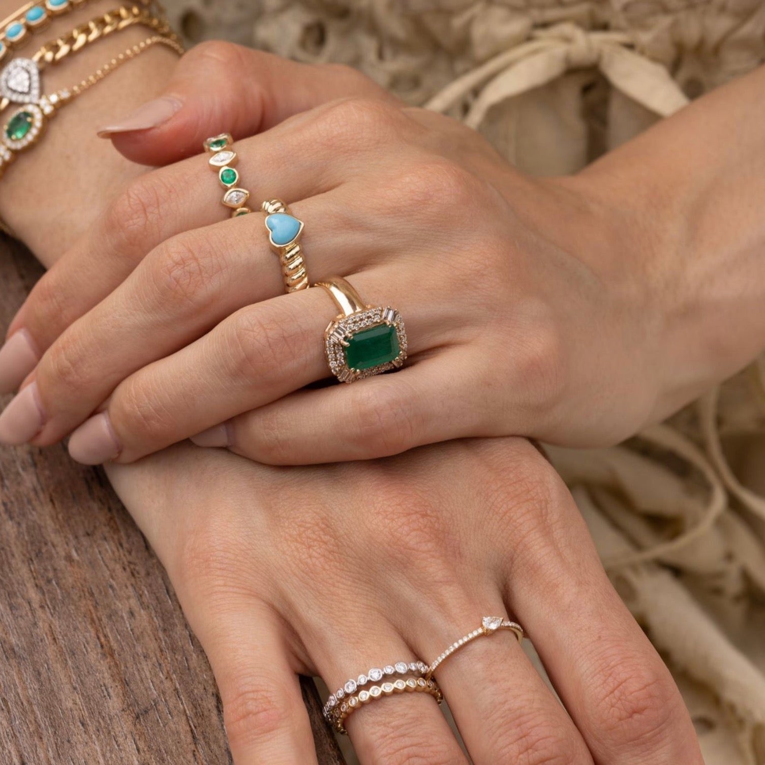Gold Bezel Marquise Diamond Round Emerald Eternity Ring