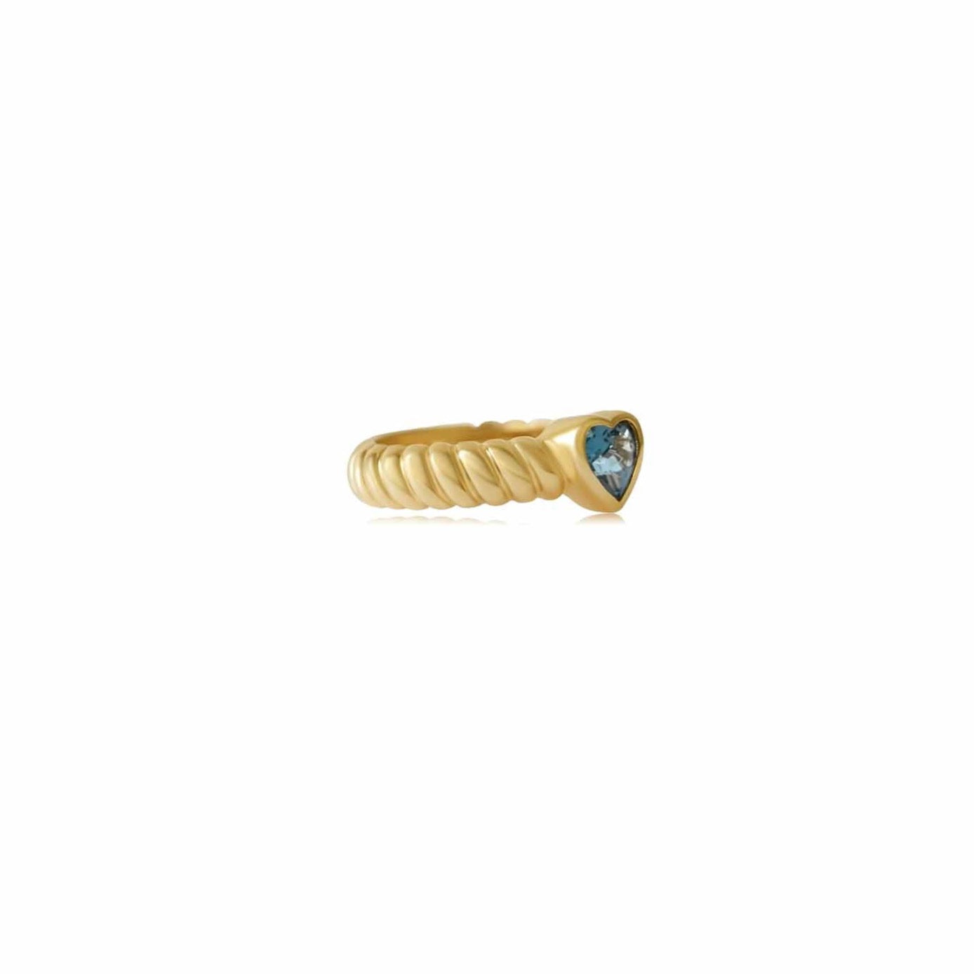 Gold Blue Topaz Heart Twist Ring