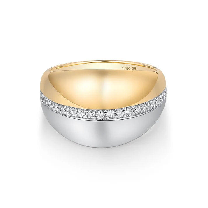 Two Tone Gold Diamond Chunky Ring