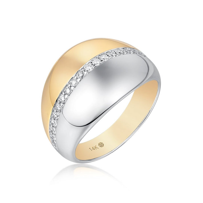 This Two Tone Gold Diamond Chunky Ring features diamonds set in 14k Yellow/White Gold.