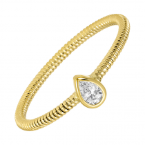 Delicate yet distinctive. This 14k yellow gold ring features a pear-shaped diamond set in a sleek bezel, complemented by a signature textured band—an effortless piece to wear every day.