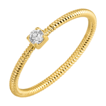 Minimal, modern, and made to stack. This 14k yellow gold ring features a round diamond set on a sleek textured band—perfect for everyday wear or layered with your favorite styles.