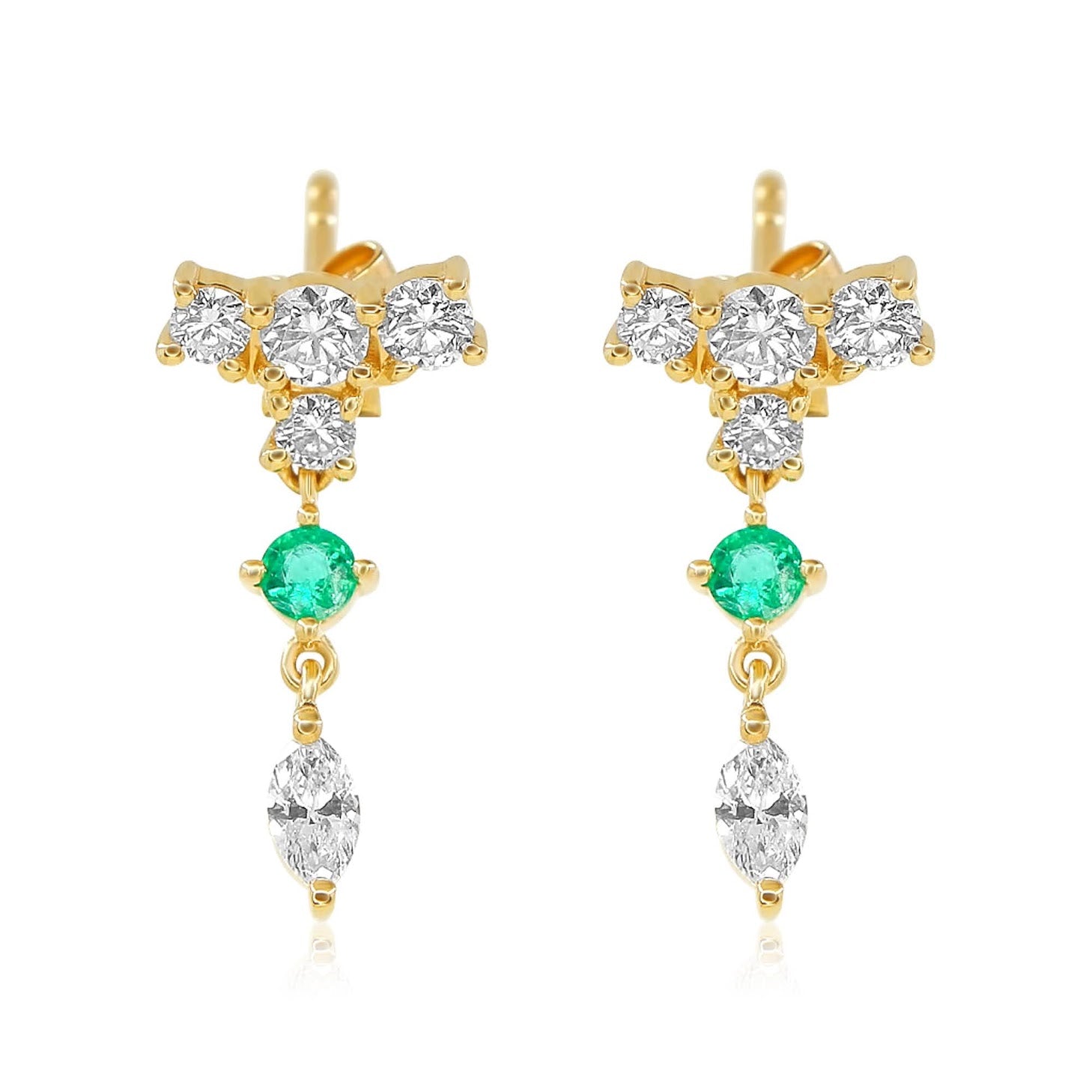 These Gold Diamond Bar and Emerald Drop Earring feature diamonds set in 14K yellow gold.