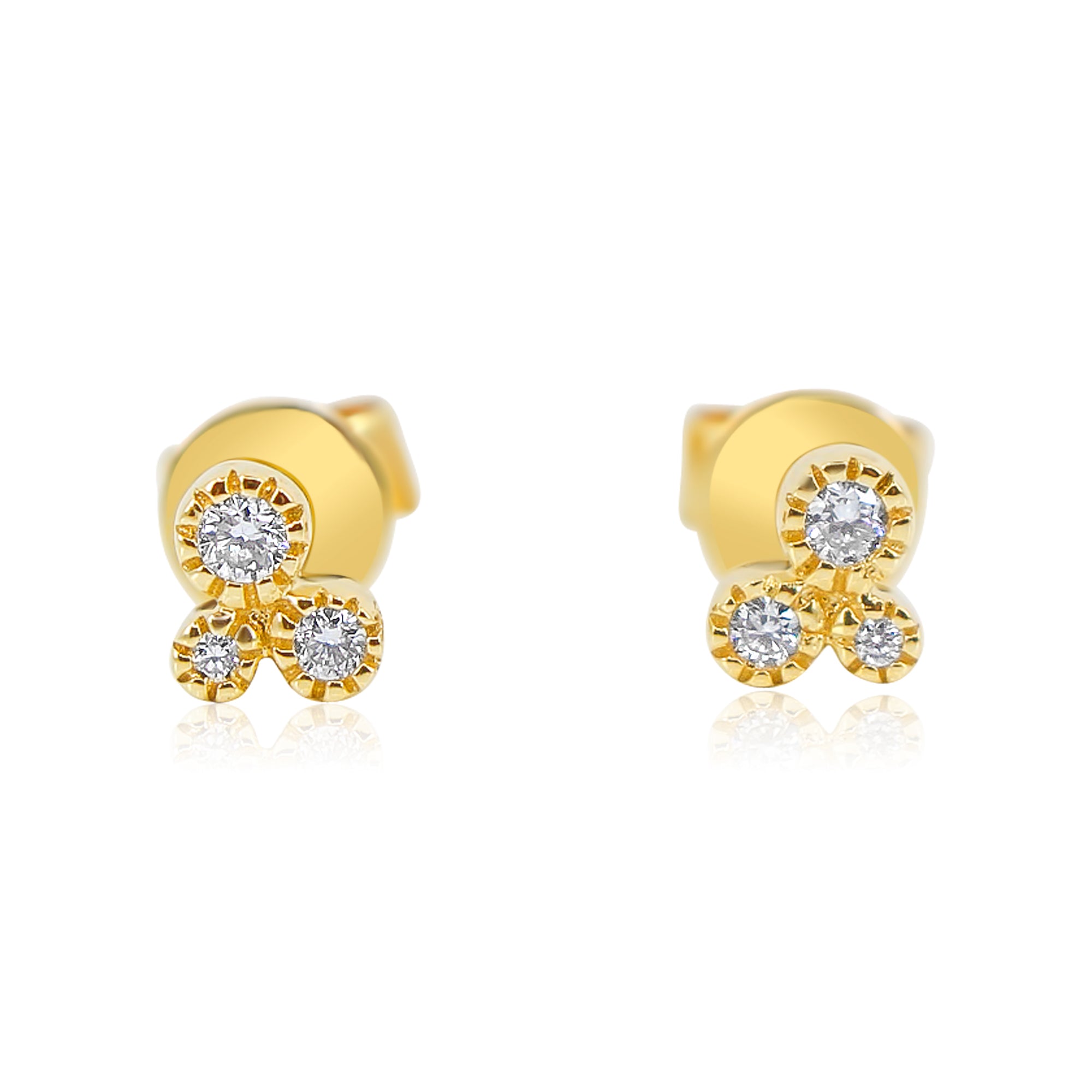 Gold Diamond Trio Bezel Graduated Stud Earring