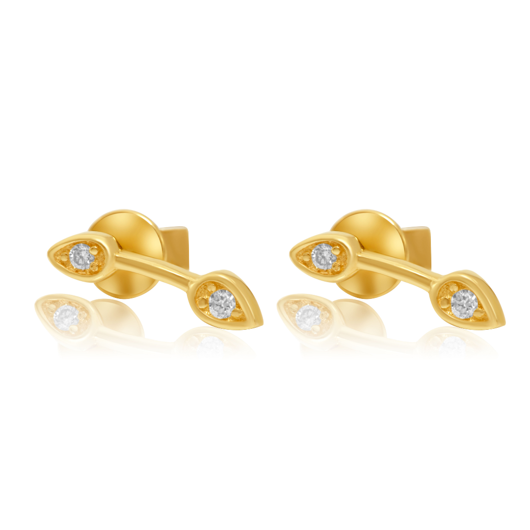 This Gold Diamond Double Pear Bar Earring features diamonds set in 14k Yellow Gold.