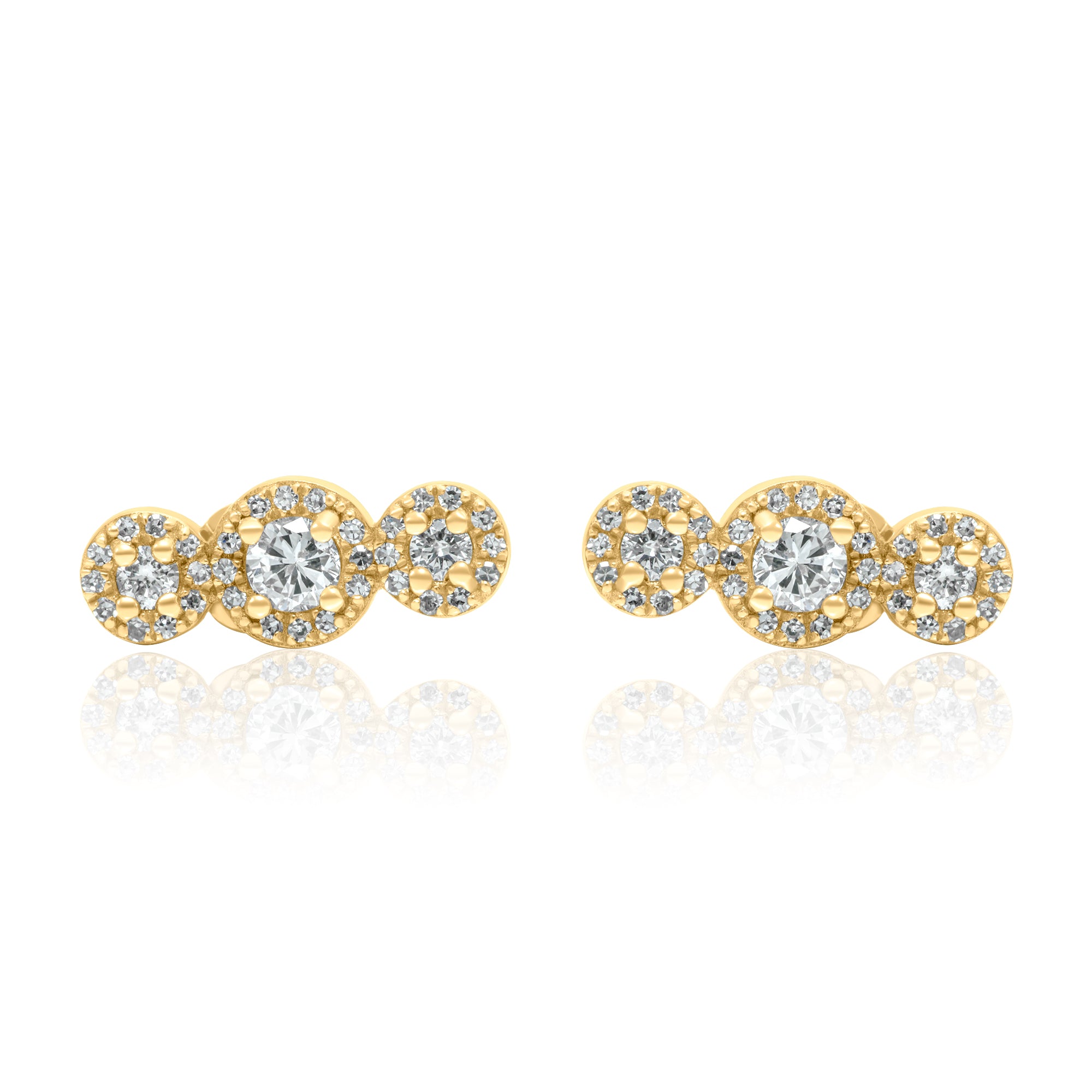 Gold Diamond Triple Round Bar Climber Earring