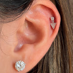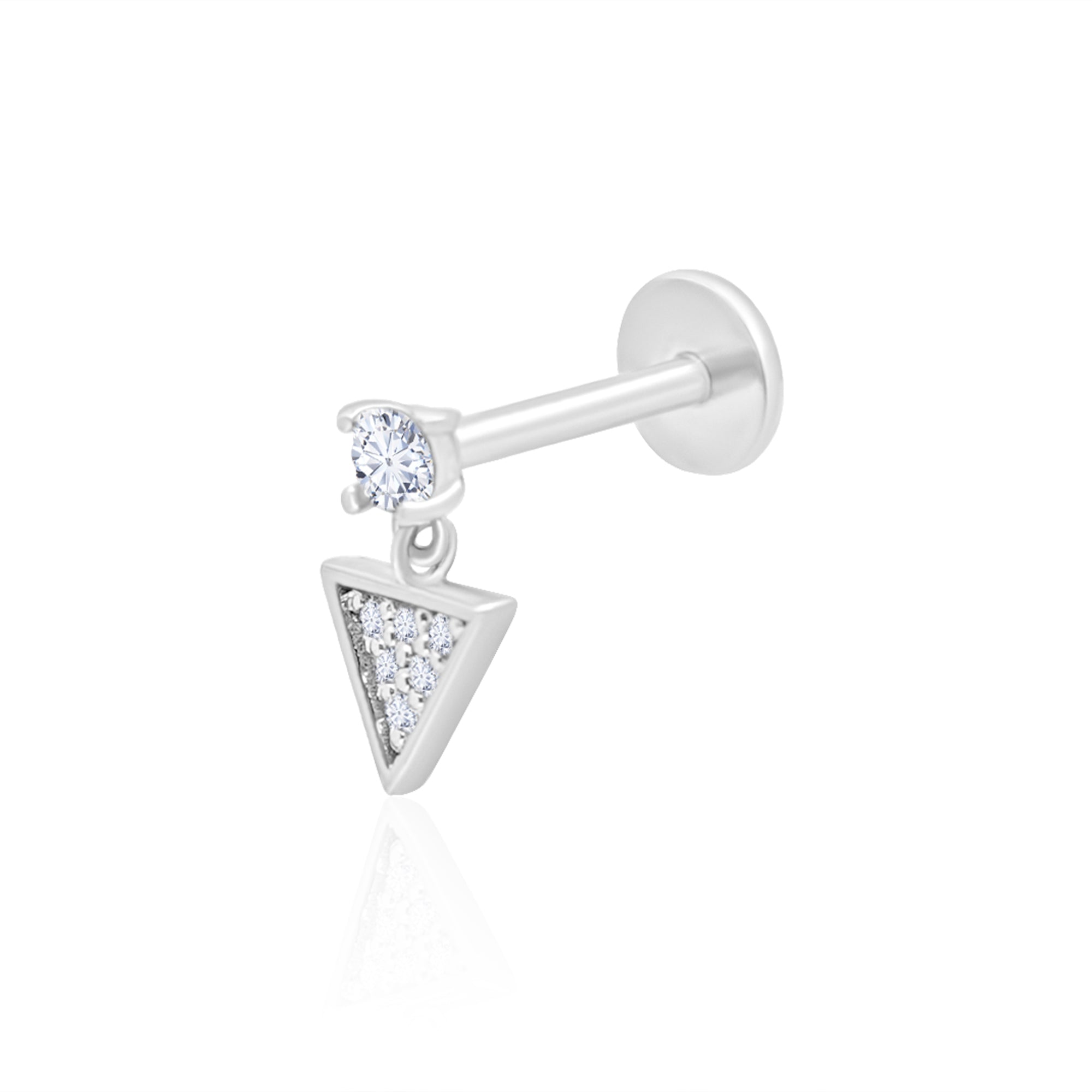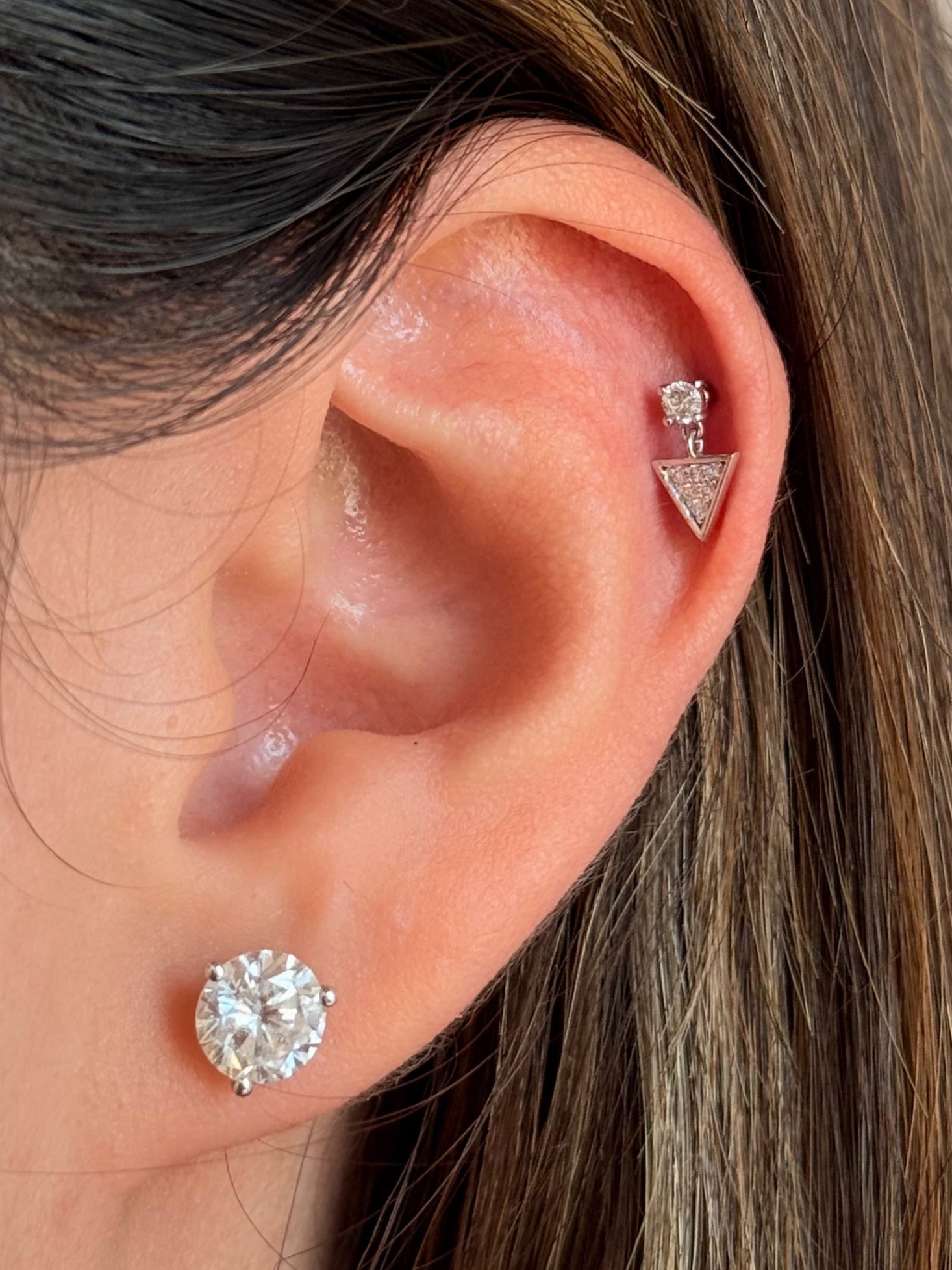 This Gold Diamond Triangle Drop Flat Back Earring features diamonds set in 14k Gold.