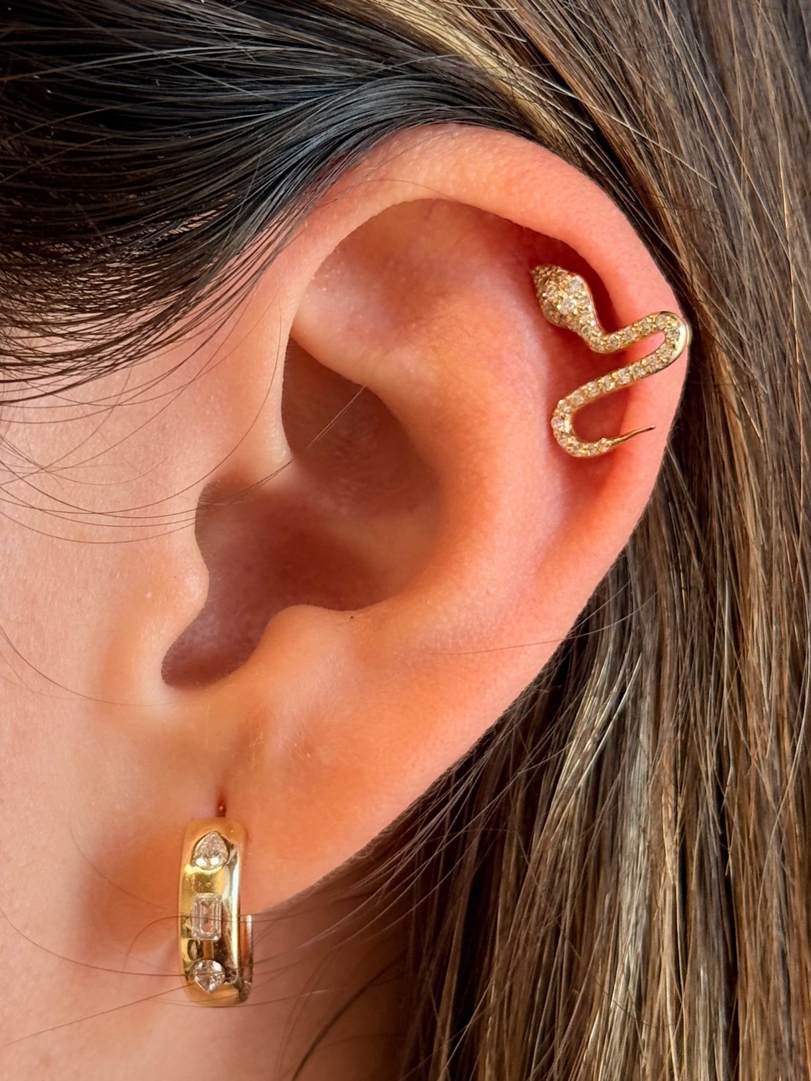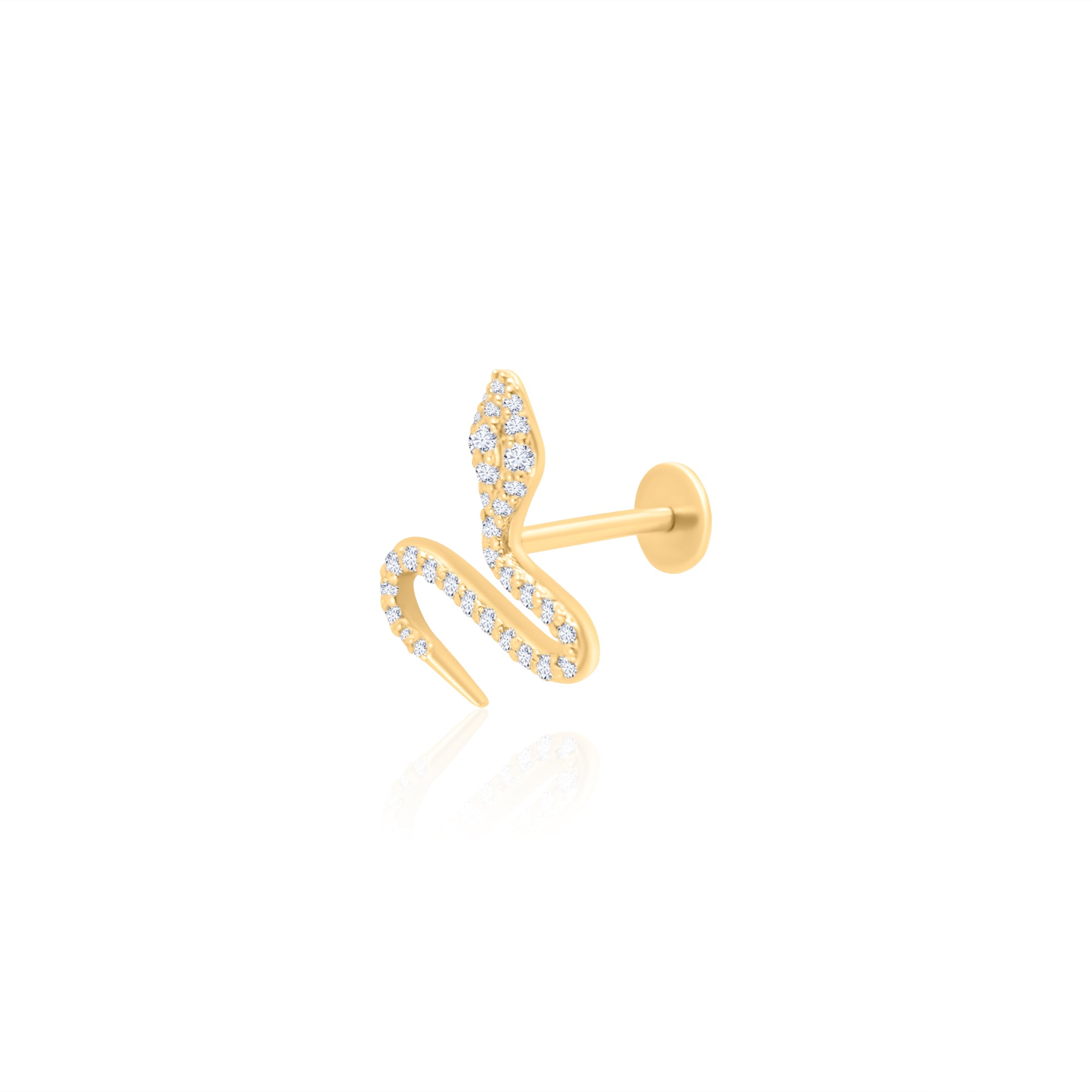 This Gold Diamond Snake Flat Back Earring features diamonds set in 14k Gold.