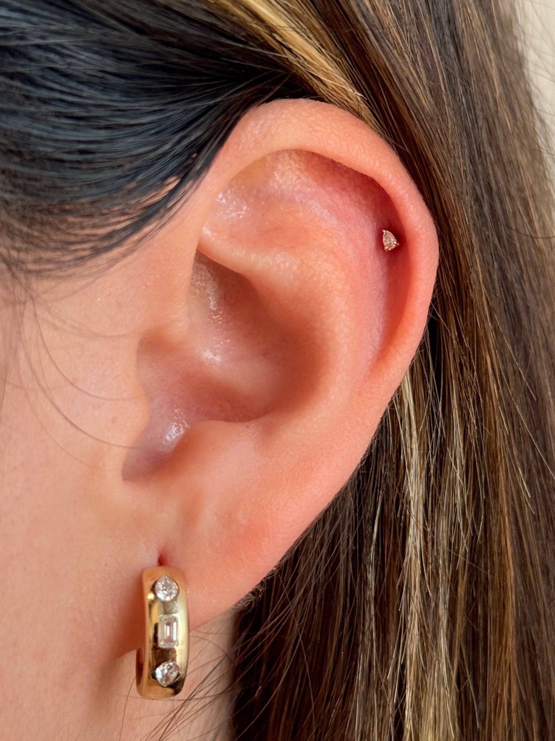 Gold Micro Diamond Pear Flat Back Earring
