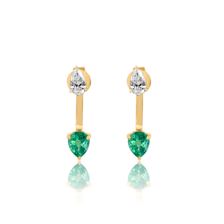 These Gold Diamond and Emerald Ear Jacket features diamonds set in 14K Yellow gold.