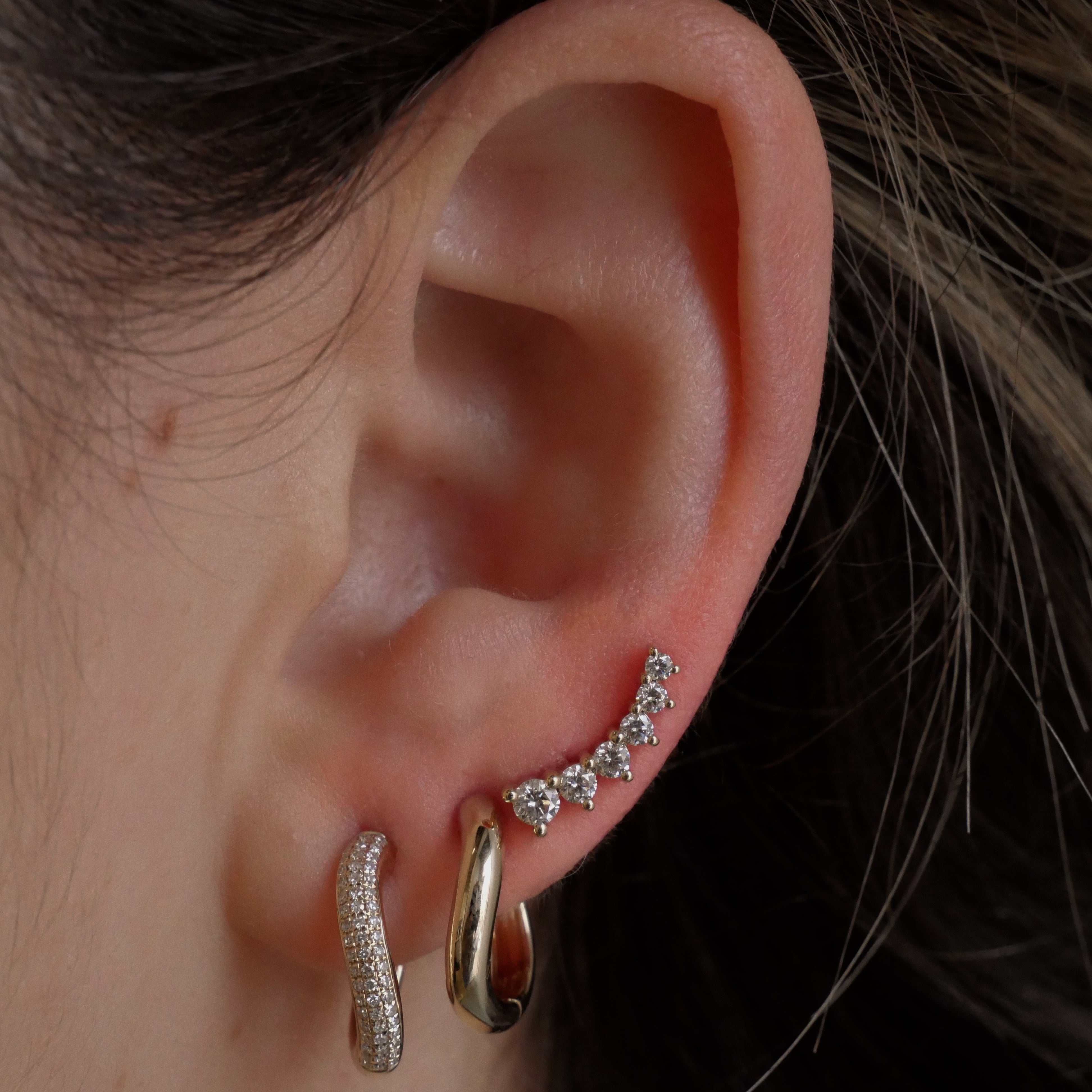 This Gold Diamond Three Prong Climber Earrings features diamonds set in 14k Yellow Gold.
