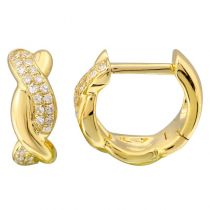 A modern twist on a timeless classic. Crafted in 14k yellow gold, this twisted mini hoop is accented with pavé diamonds for a touch of effortless elegance—perfect for everyday wear or stacking with other hoops.