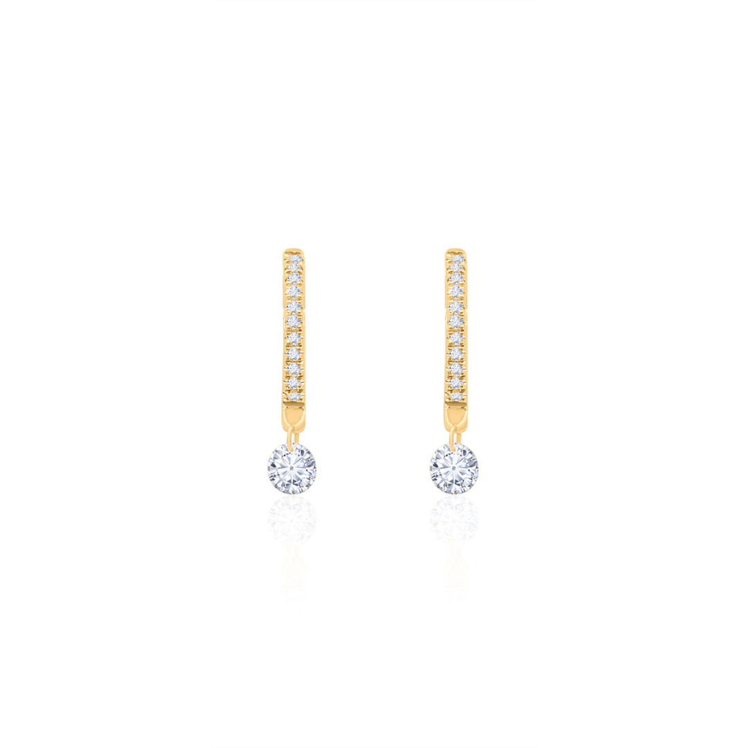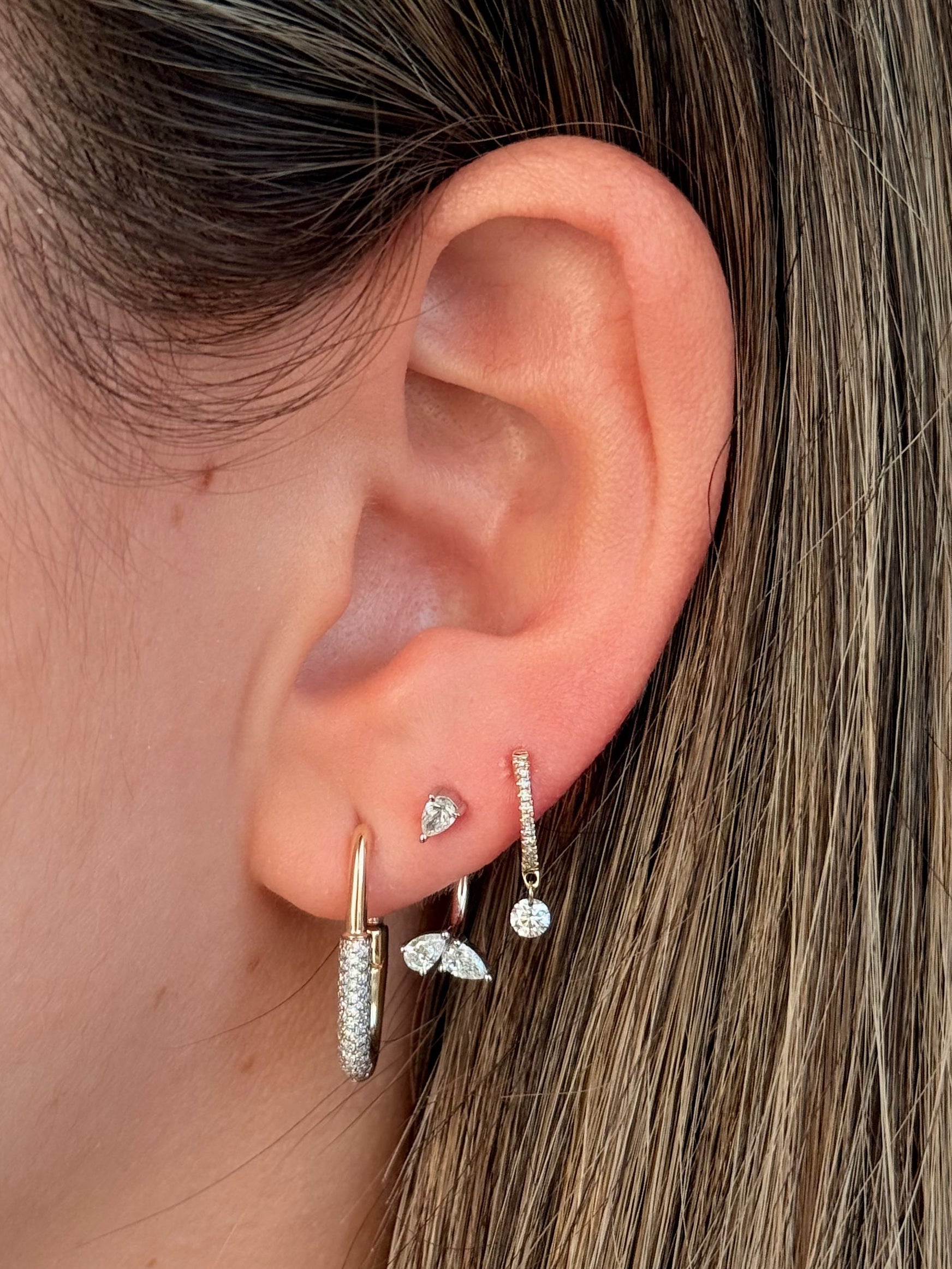 A modern essential with just the right amount of movement. This floating diamond hoop catches the light from every angle — sleek, minimal, and designed to elevate any ear stack.