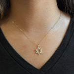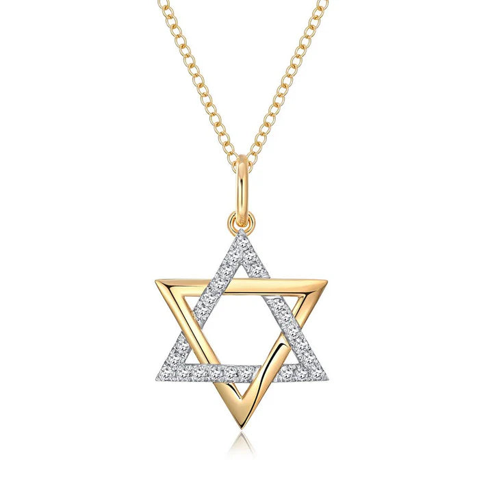 This Gold Half Diamond Star of David Pendant features diamonds set in 14k Yellow/White Gold.