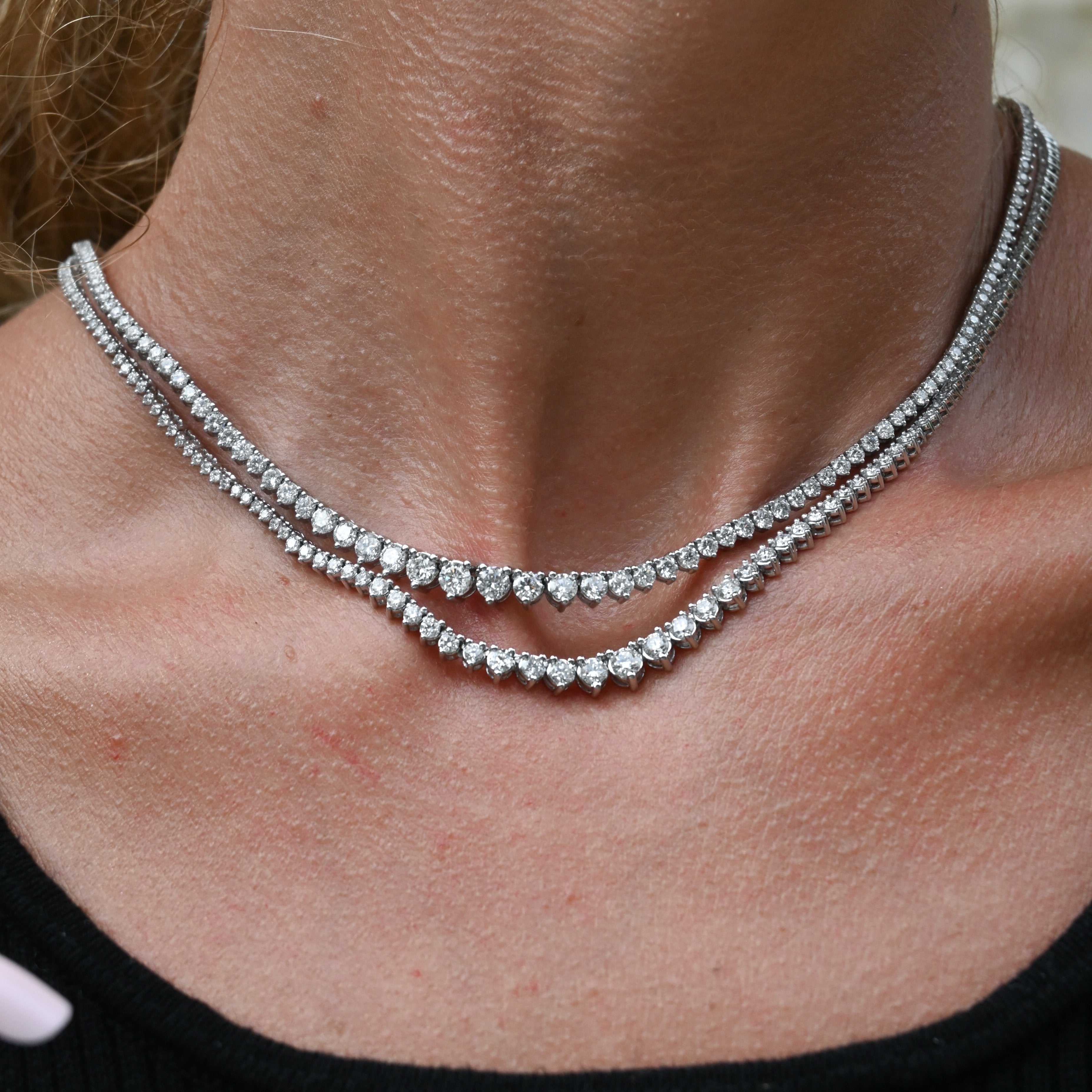 This Gold Diamond Graduated Three Prong Tennis Necklace features diamonds set in 14k White Gold.