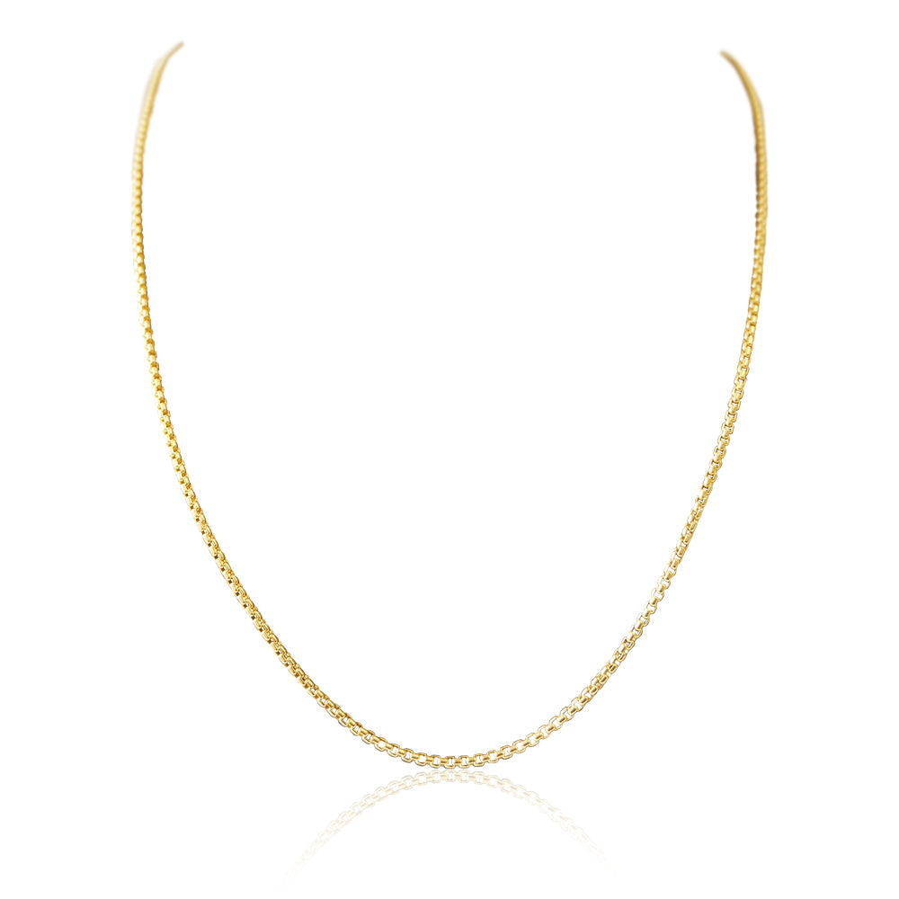 This Gold Medium Box Chain Necklace is set in 14k Yellow Gold.