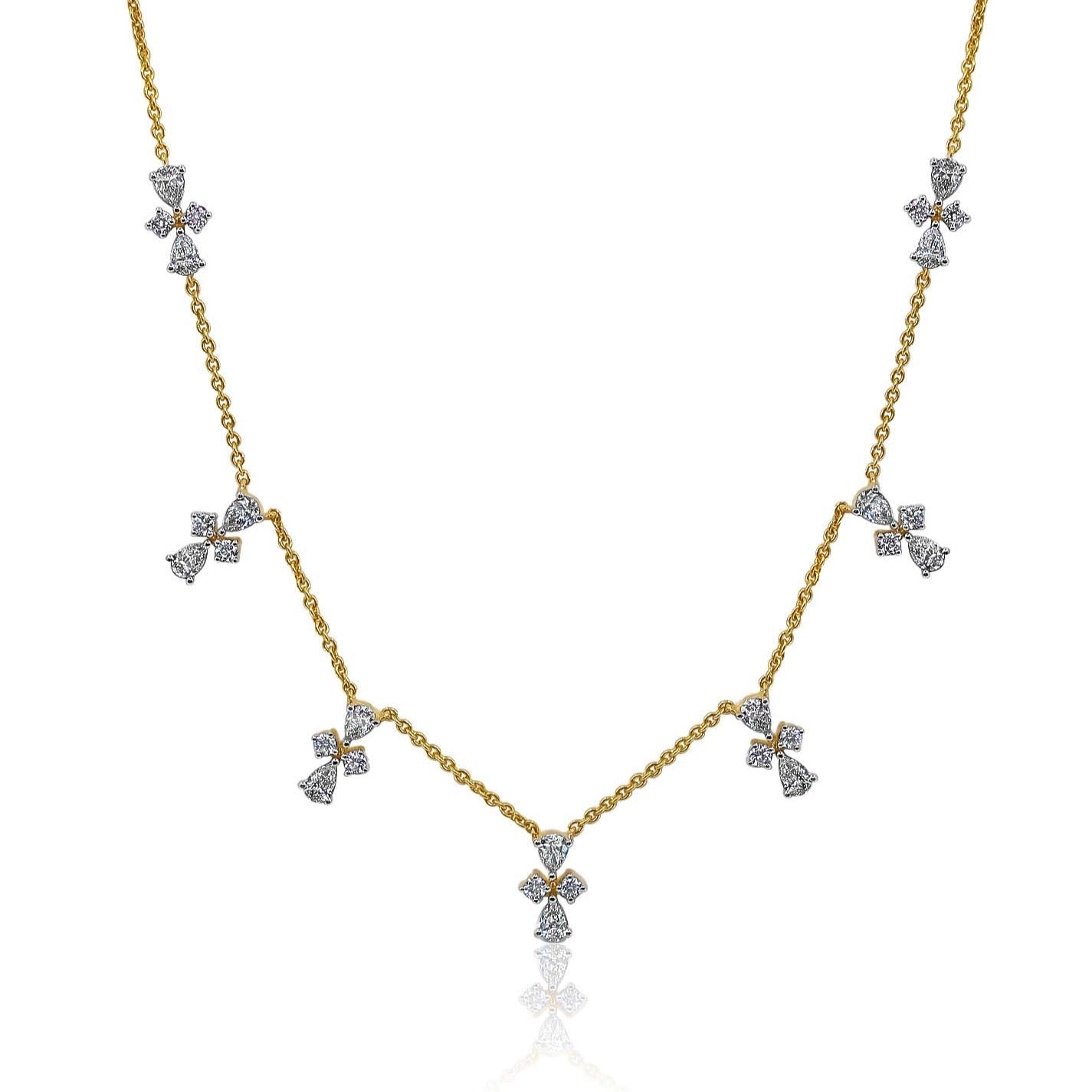 This Gold Diamond Clover Necklace features diamond set in 14k Yellow Gold.