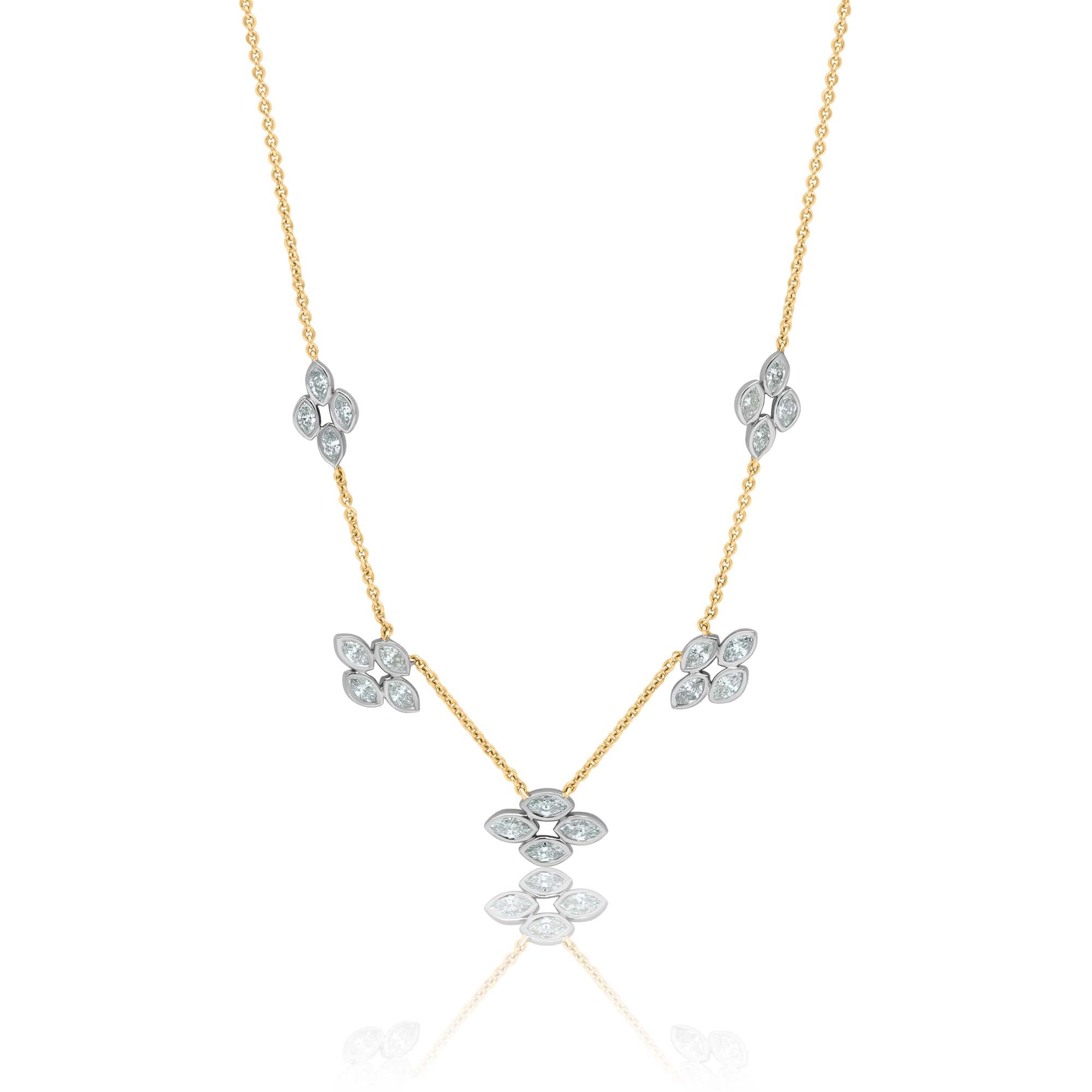 This Gold Diamond Marquise Clover Spaced Necklace features diamonds set in 14k Yellow Gold.