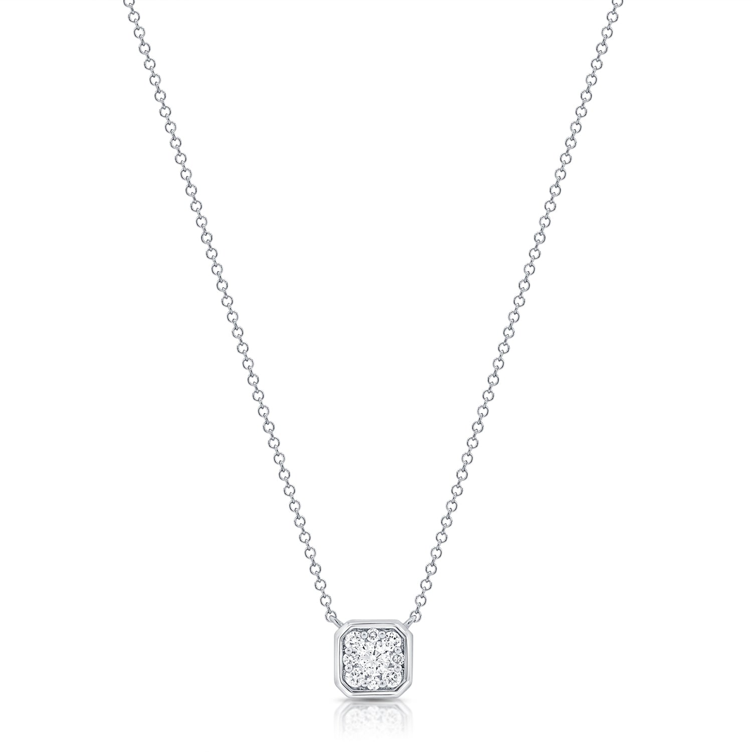 This Gold Octagon Diamond Necklace features diamonds set in 14k White Gold.