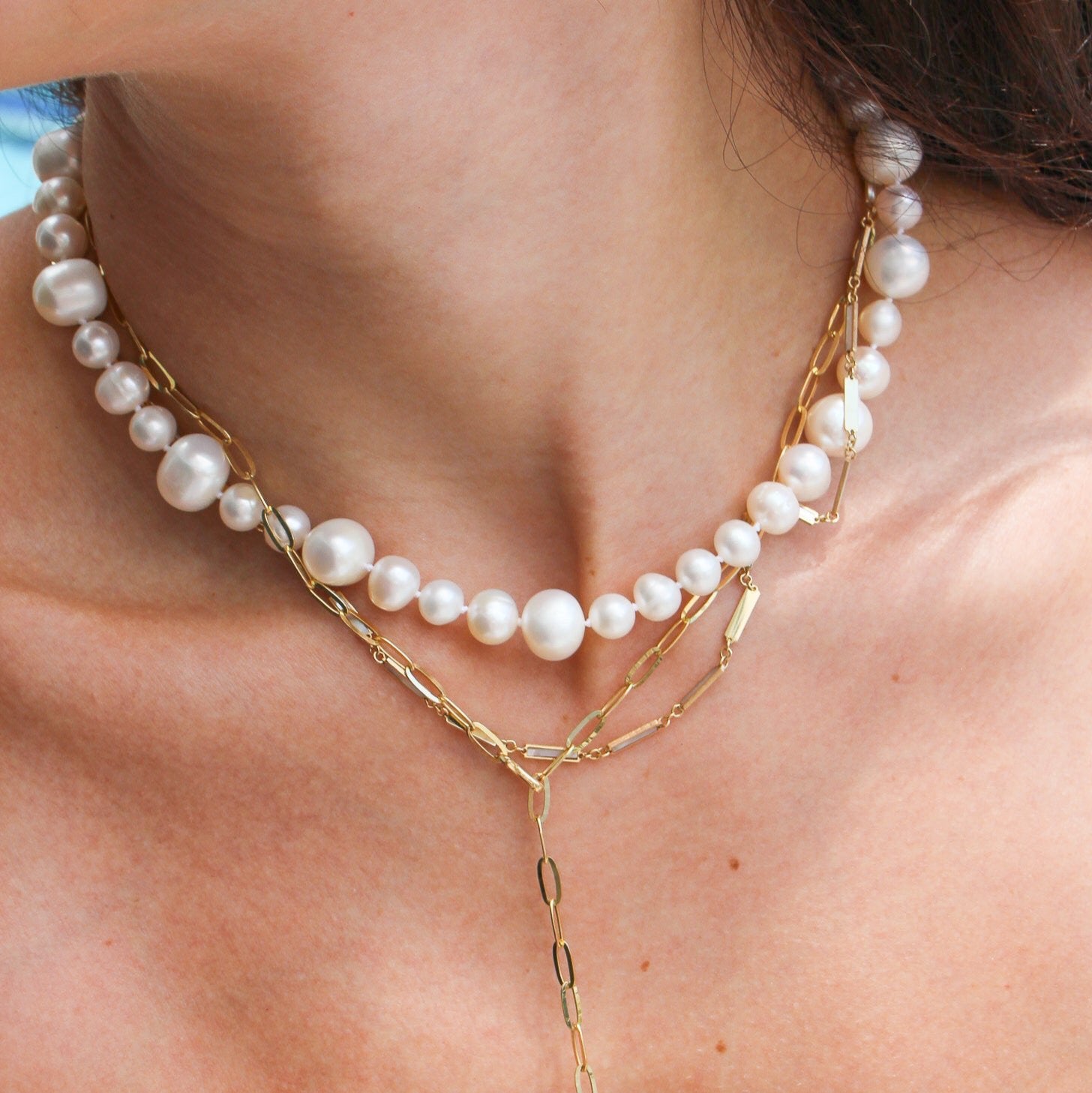 This Gold Graduated Pearl Necklace features pearls set in 14KT Yellow Gold.