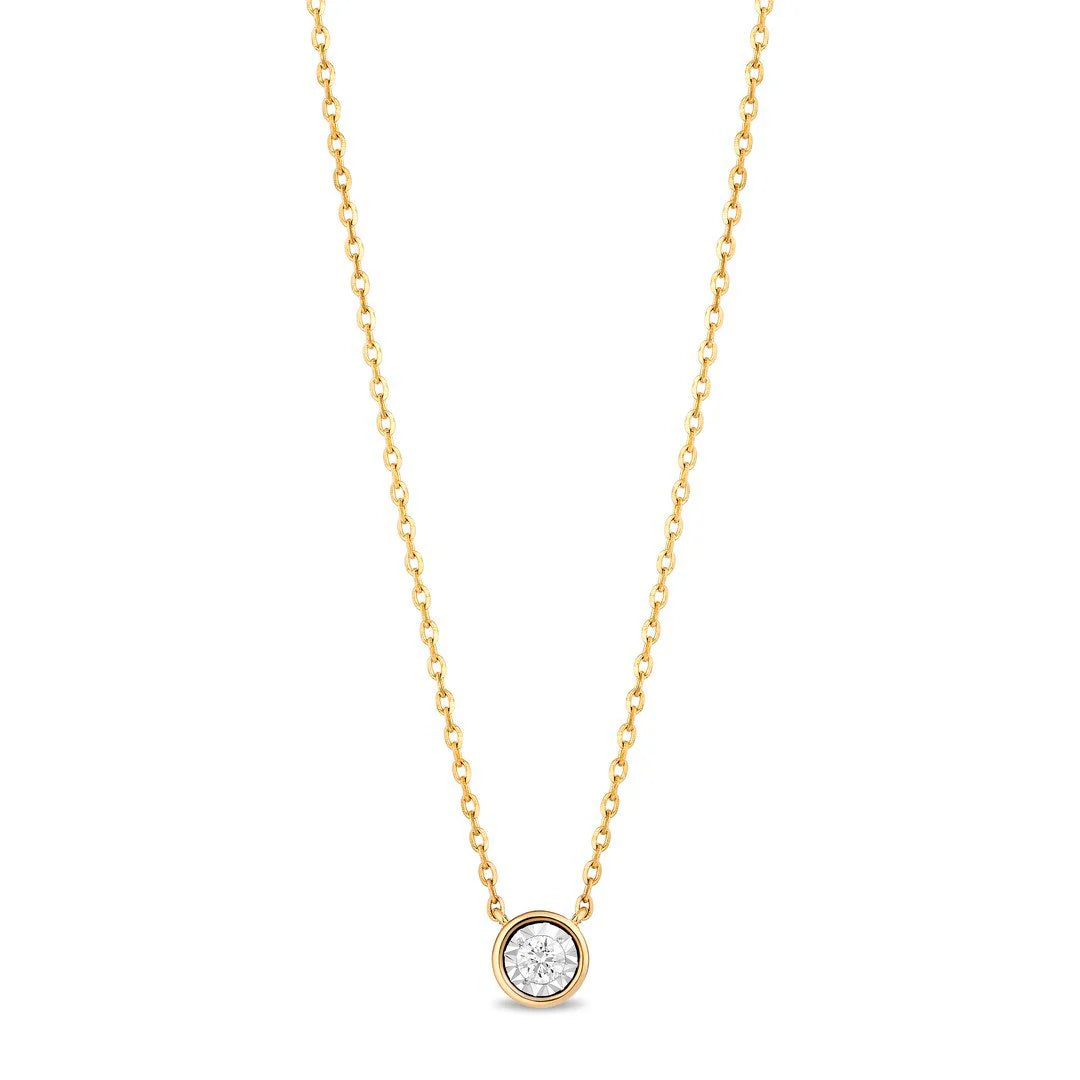 This Gold Large Diamond Bezel Necklace features diamond set in 14k Yellow Gold.