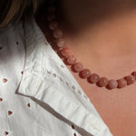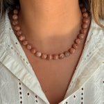 Soft peach moonstone beads, said to bring positivity and balance. A glowing neutral that adds warmth to your summer stack.