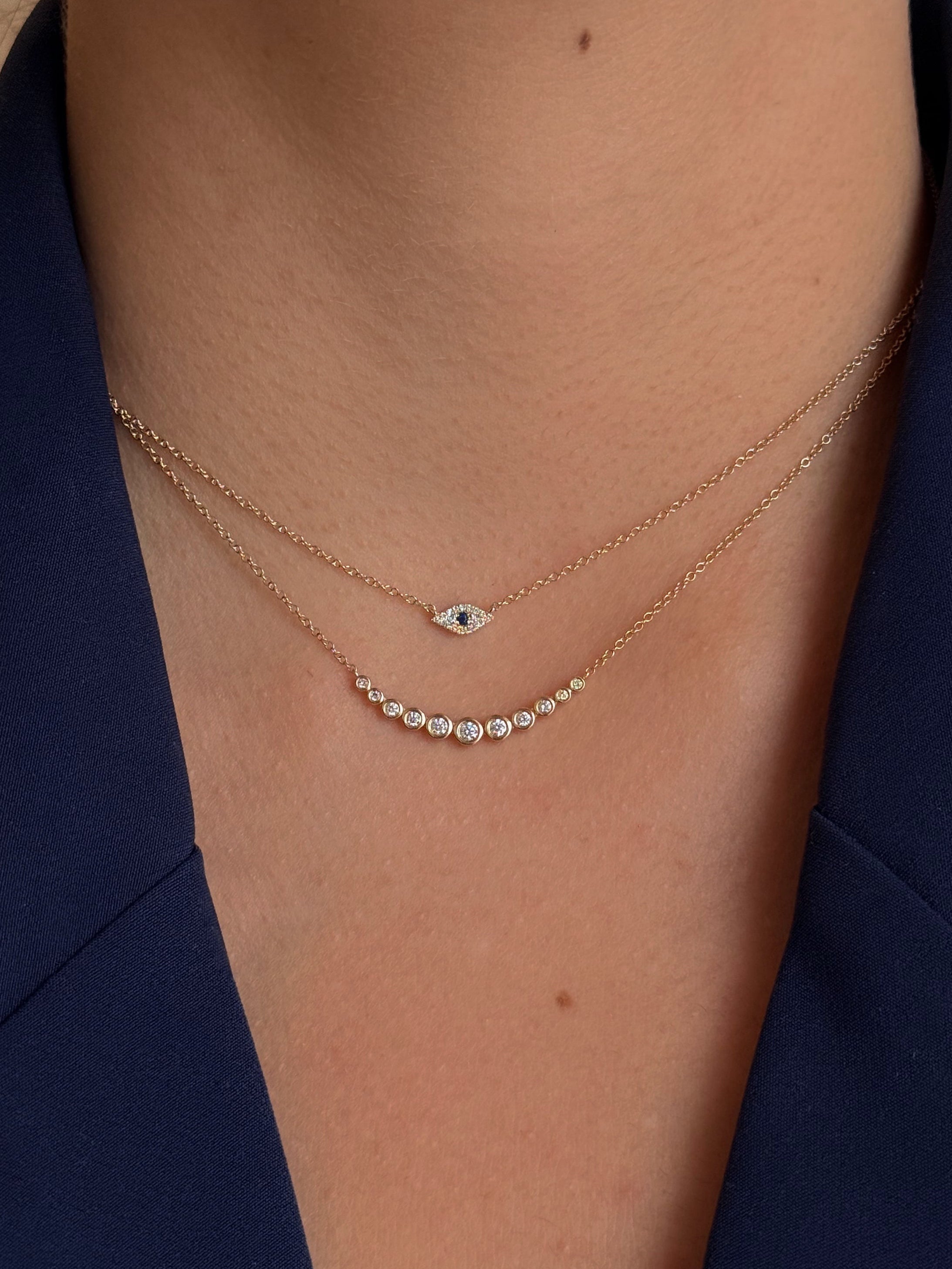 Gold Diamond & Sapphire Mini Evil Eye Necklace