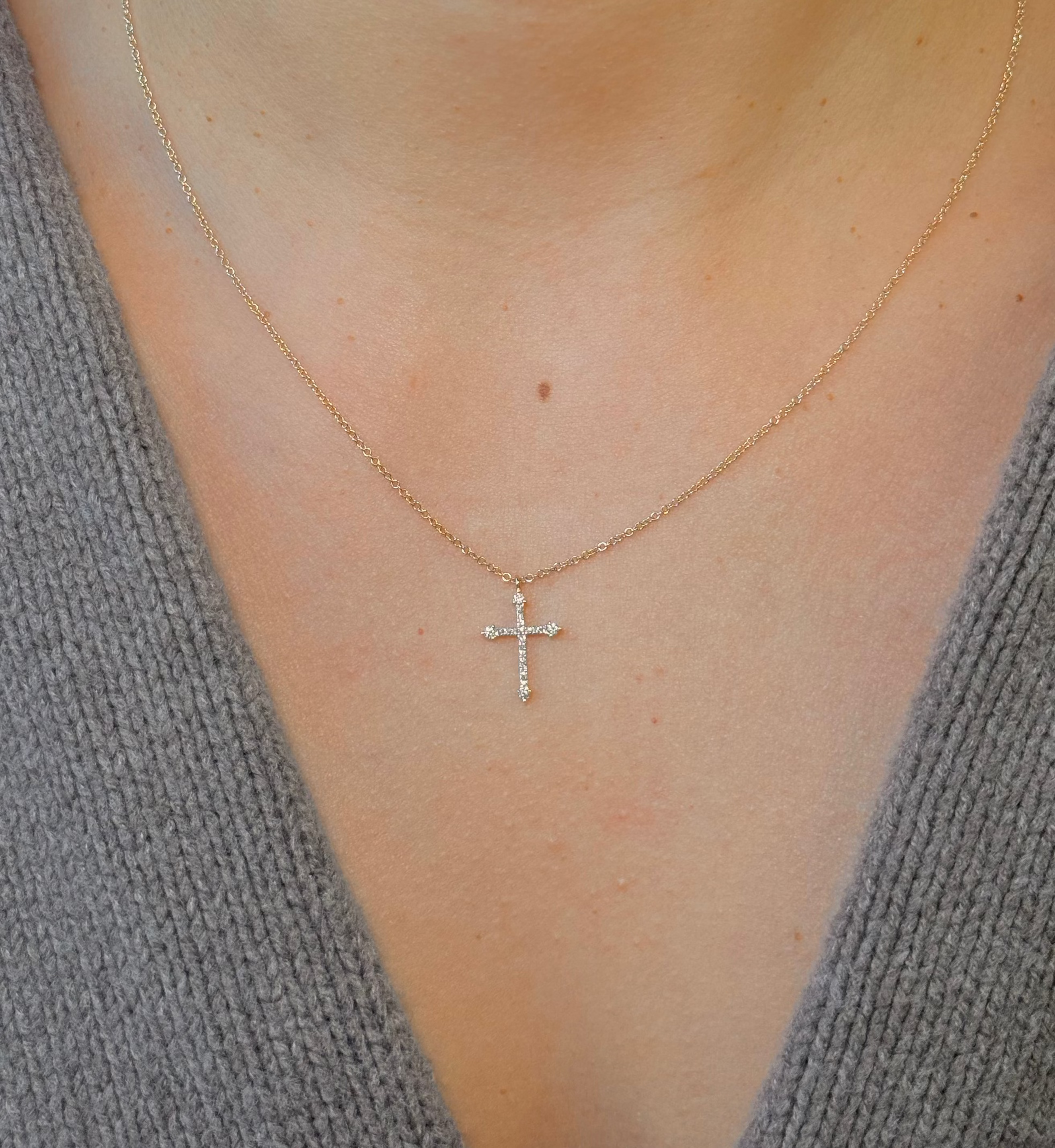 Gold Pave Diamond Cross Necklace