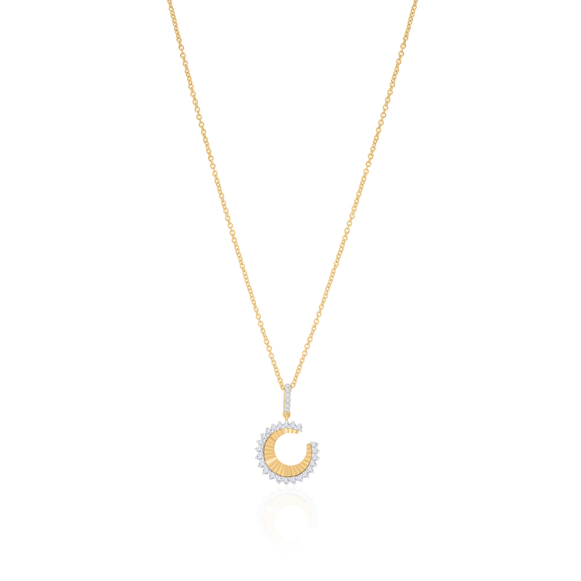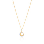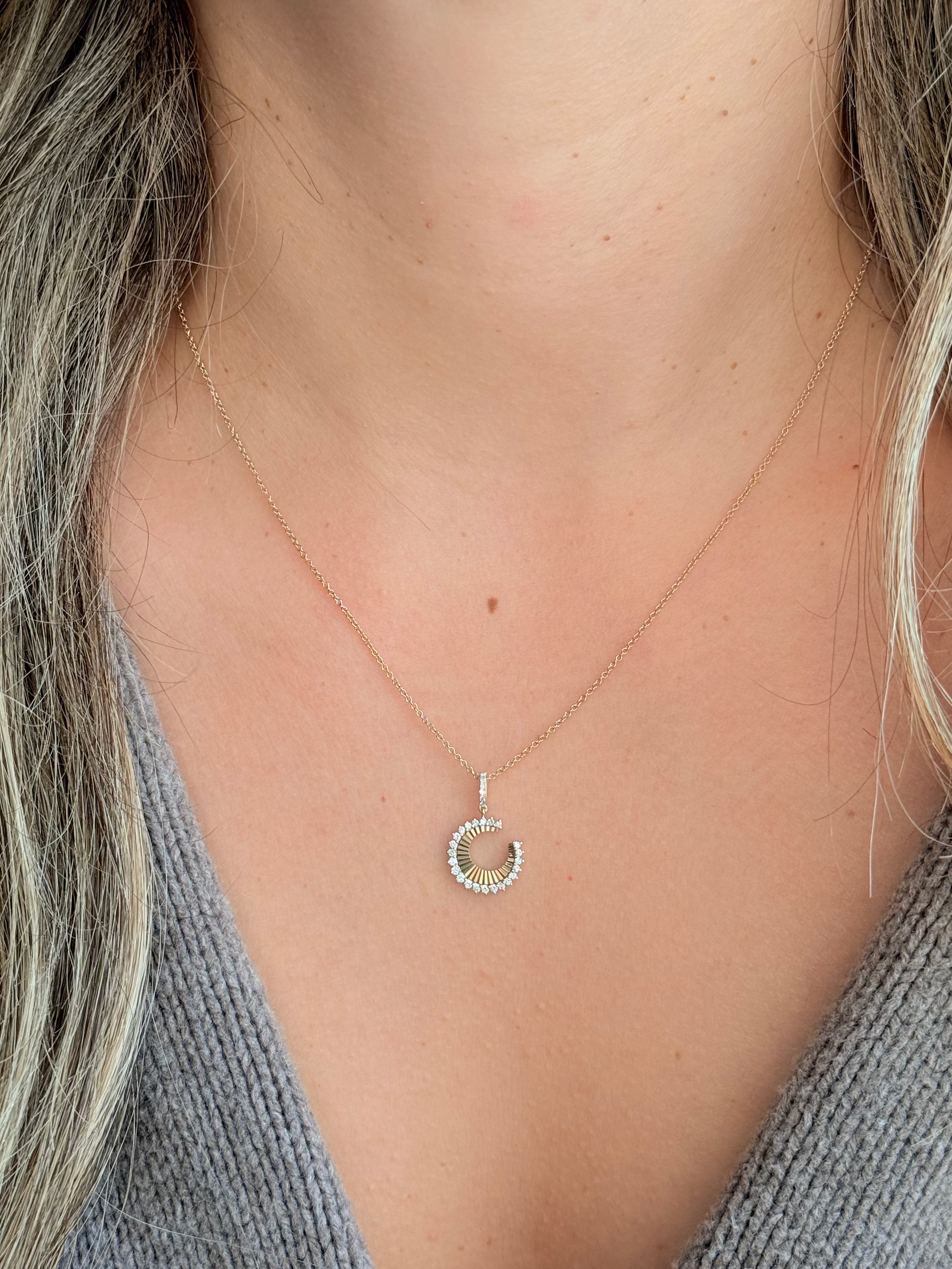 A modern moon moment—elevated in signature MMJ gold. This necklace features a pave-set crescent framed with subtle ribbed detailing, adding texture, sparkle, and everyday meaning. Perfect for layering with your charms or wearing solo as a soft touch of shine.