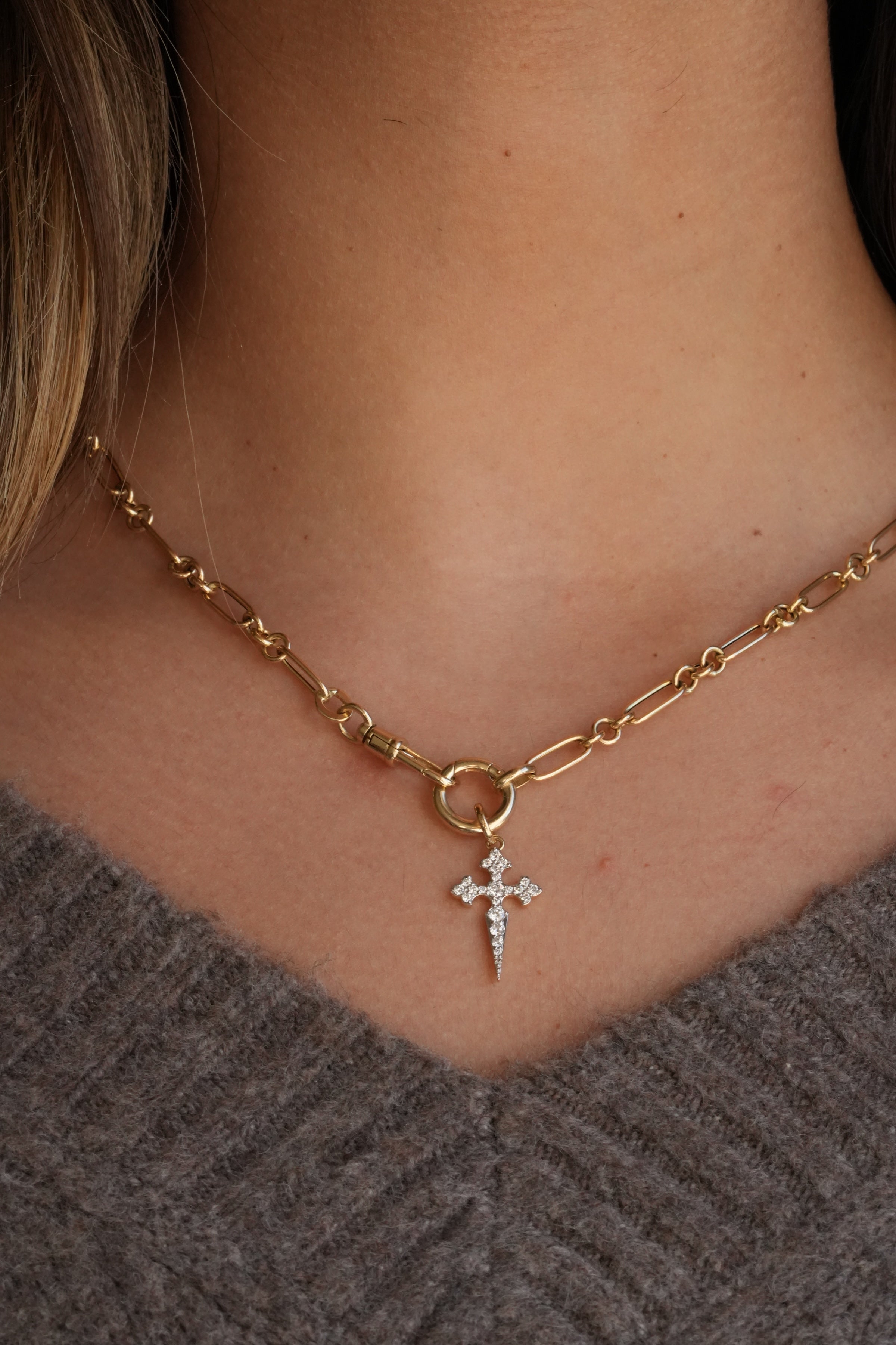A timeless chain designed with versatility in mind. Crafted in 14K yellow gold, this fancy link chain features a double clasp detail that allows for effortless styling, wear it solo, layer it with your favorite chains, or add a pendant for a personalized look. A staple piece that transitions seamlessly from everyday wear to elevated layering.
