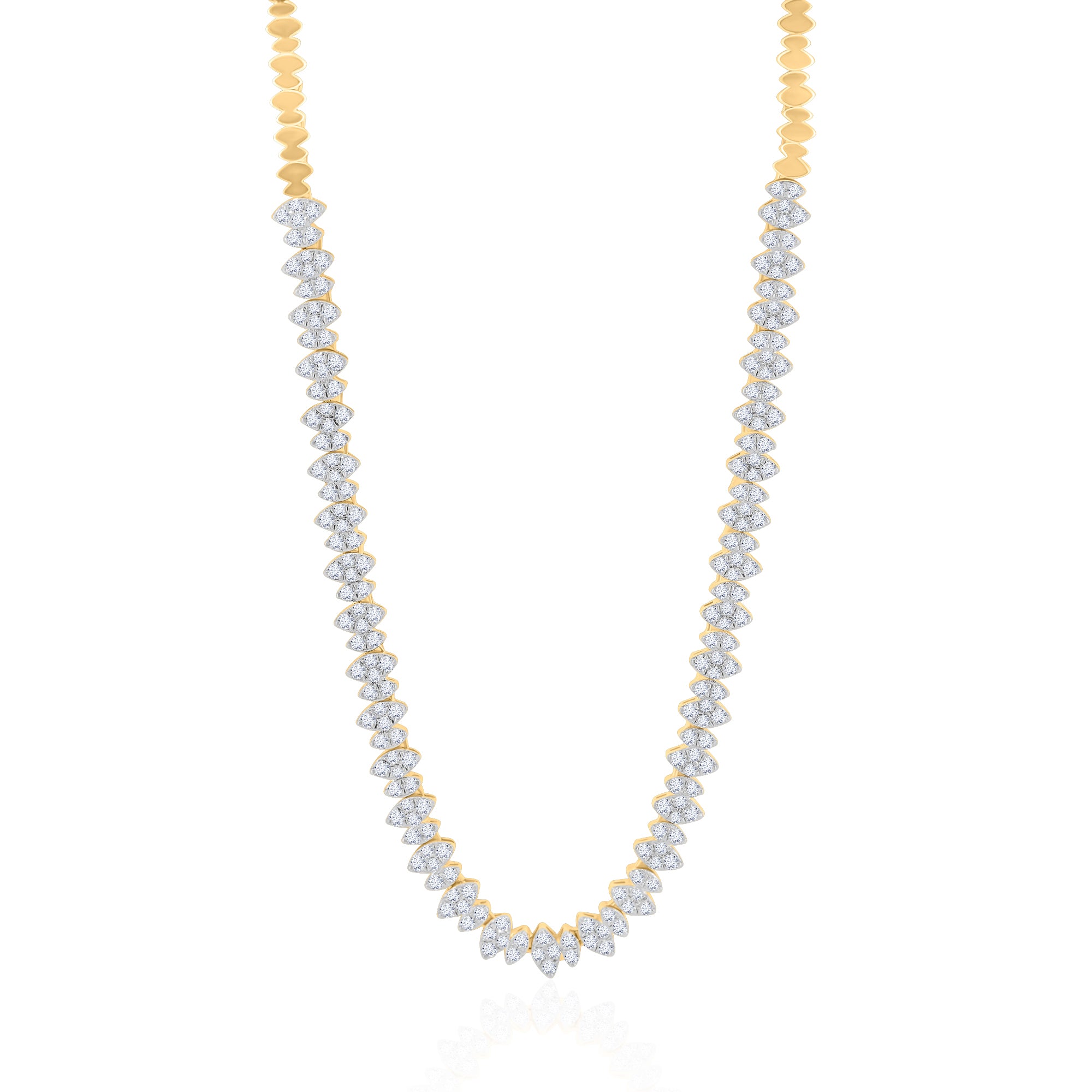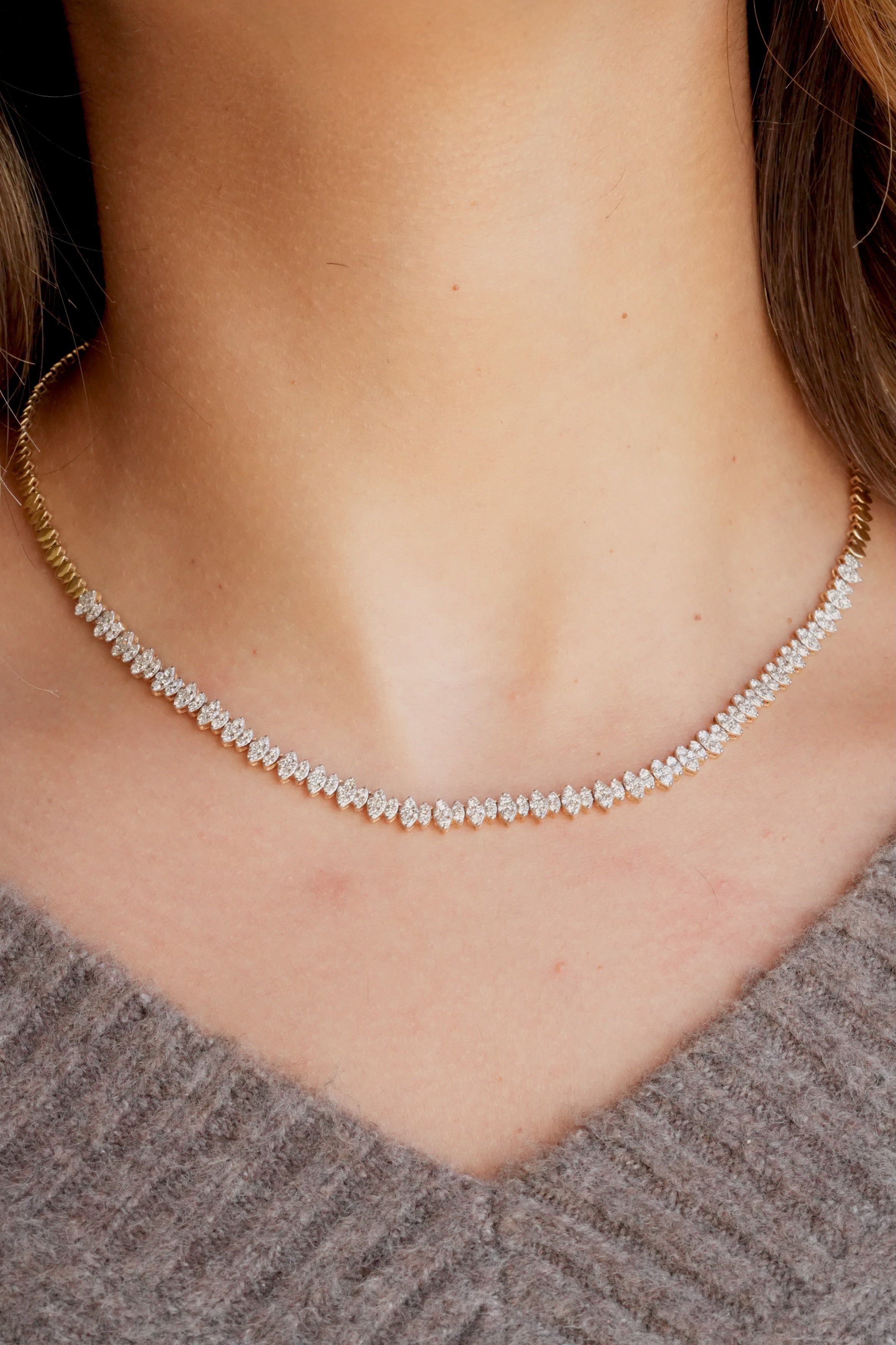 An elegant statement with timeless appeal, the Gold Multi Marquise Pavé Necklace features a row of delicately set marquise-cut diamonds that catch the light from every angle. Designed to drape beautifully along the neckline, this piece brings just the right amount of sparkle whether worn alone or layered with your everyday chains.