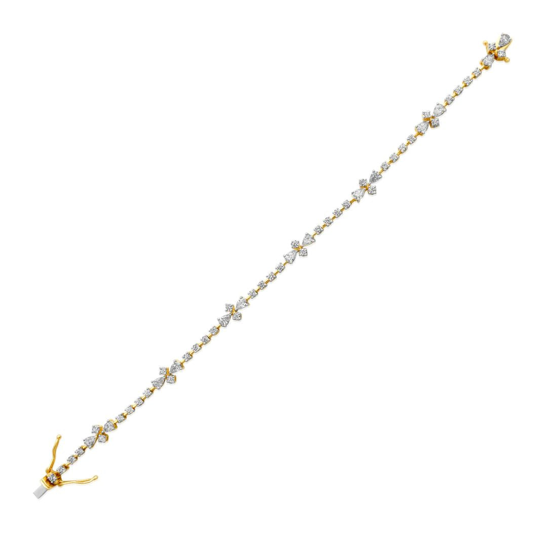 This Gold Diamond Pear Clover Tennis Bracelet features diamonds set in 14k Yellow Gold.