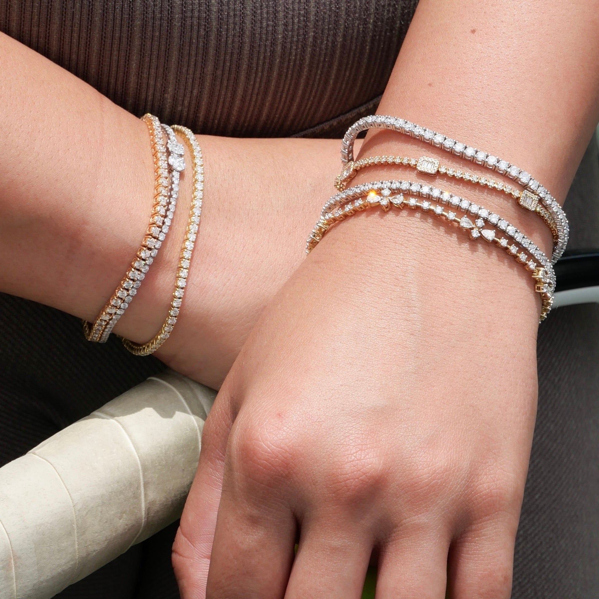 About our Gold Diamond Pear Clover Tennis Bracelet: