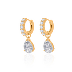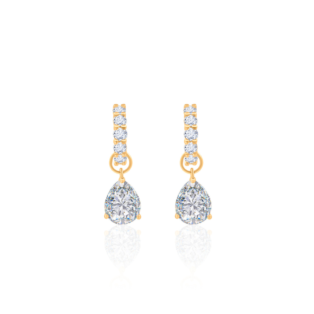 A signature style made to move with you. These gold-plated hoops feature a pear-cut lab-grown diamond charm. Available in two sizes and sold as a single or a pair—wear them your way.