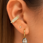 Styling: An edgy update to classic drop earrings — striking solo or paired with simple studs.