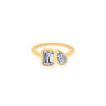 This Gold Lab Grown Double Shape Bezel Diamond Ring pairs two striking silhouettes, an emerald-cut and pear-cut lab-grown diamond, bezel-set in 14k Yellow Gold. A modern, sculptural take on a two-stone ring with brilliant everyday shine.