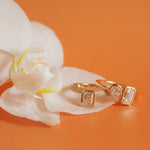 A sleek emerald-cut lab-grown diamond sits in a soft bezel setting, paired with a pavé diamond band for added brilliance. Crafted in 14k yellow gold, it’s the perfect mix of minimal and statement — designed to wear solo or layered with your favorite rings.