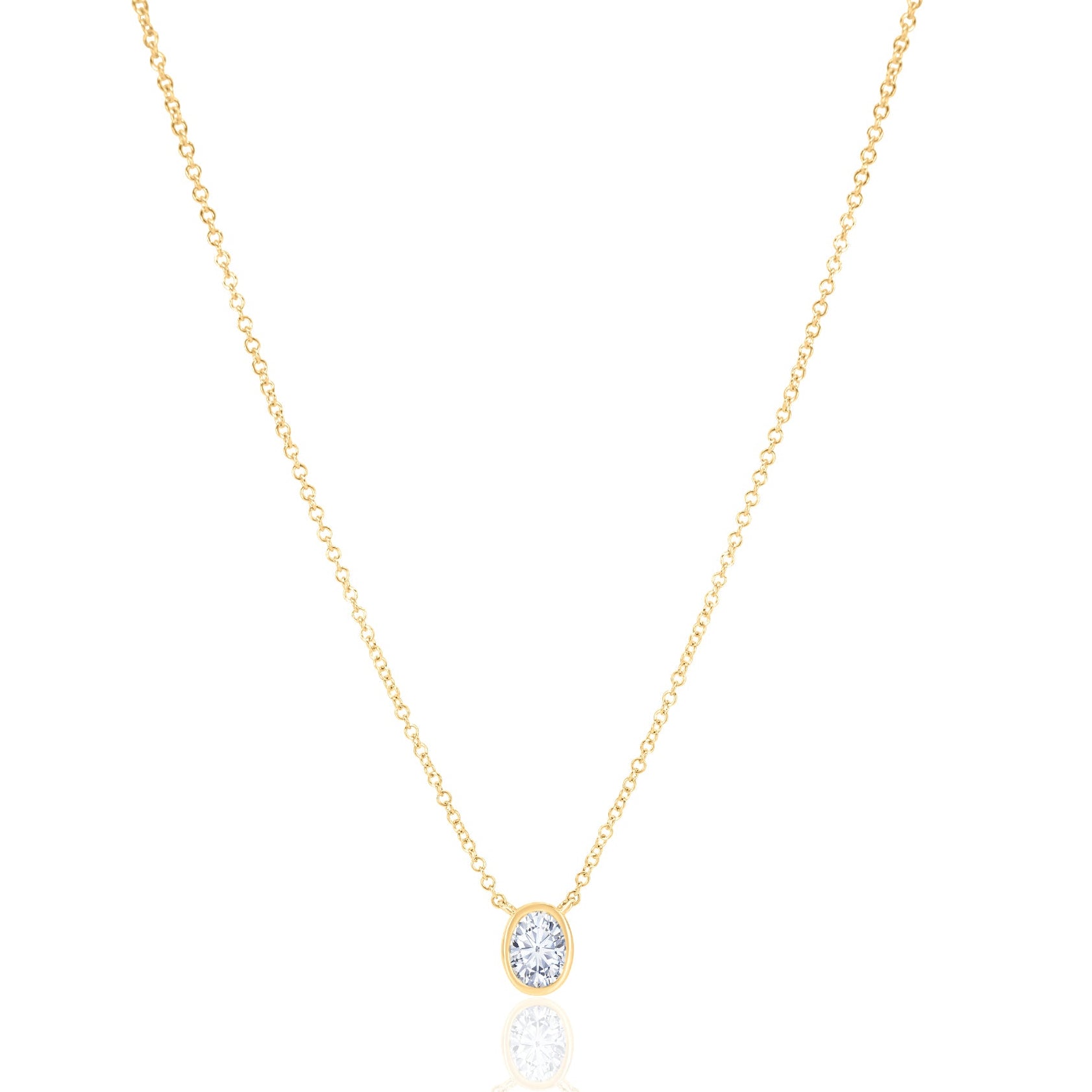 Gold Lab Grown Bezel Oval Charm Diamond Necklace