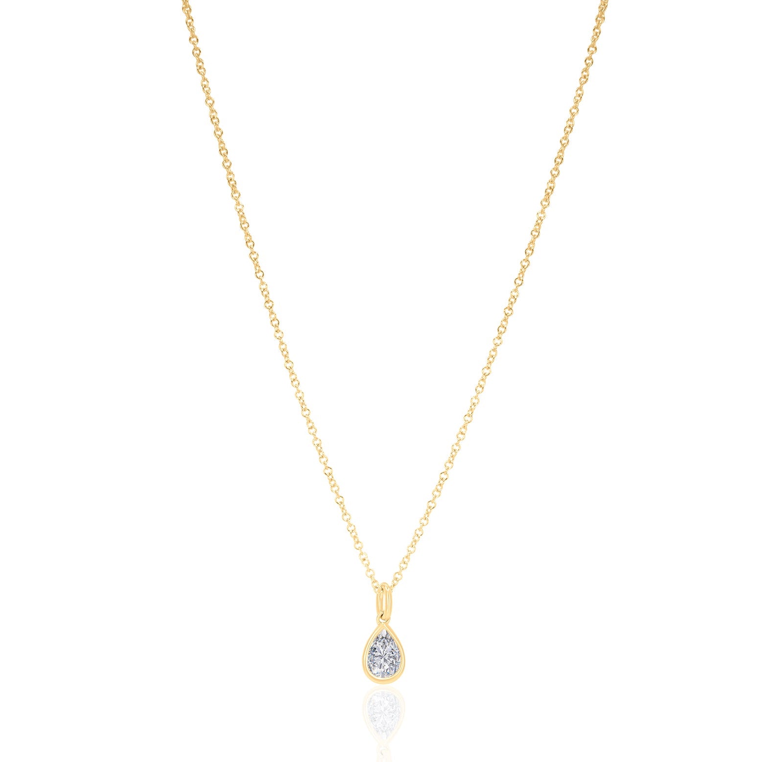 Gold Lab Grown Bezel Pear Charm Diamond Necklace