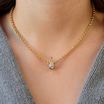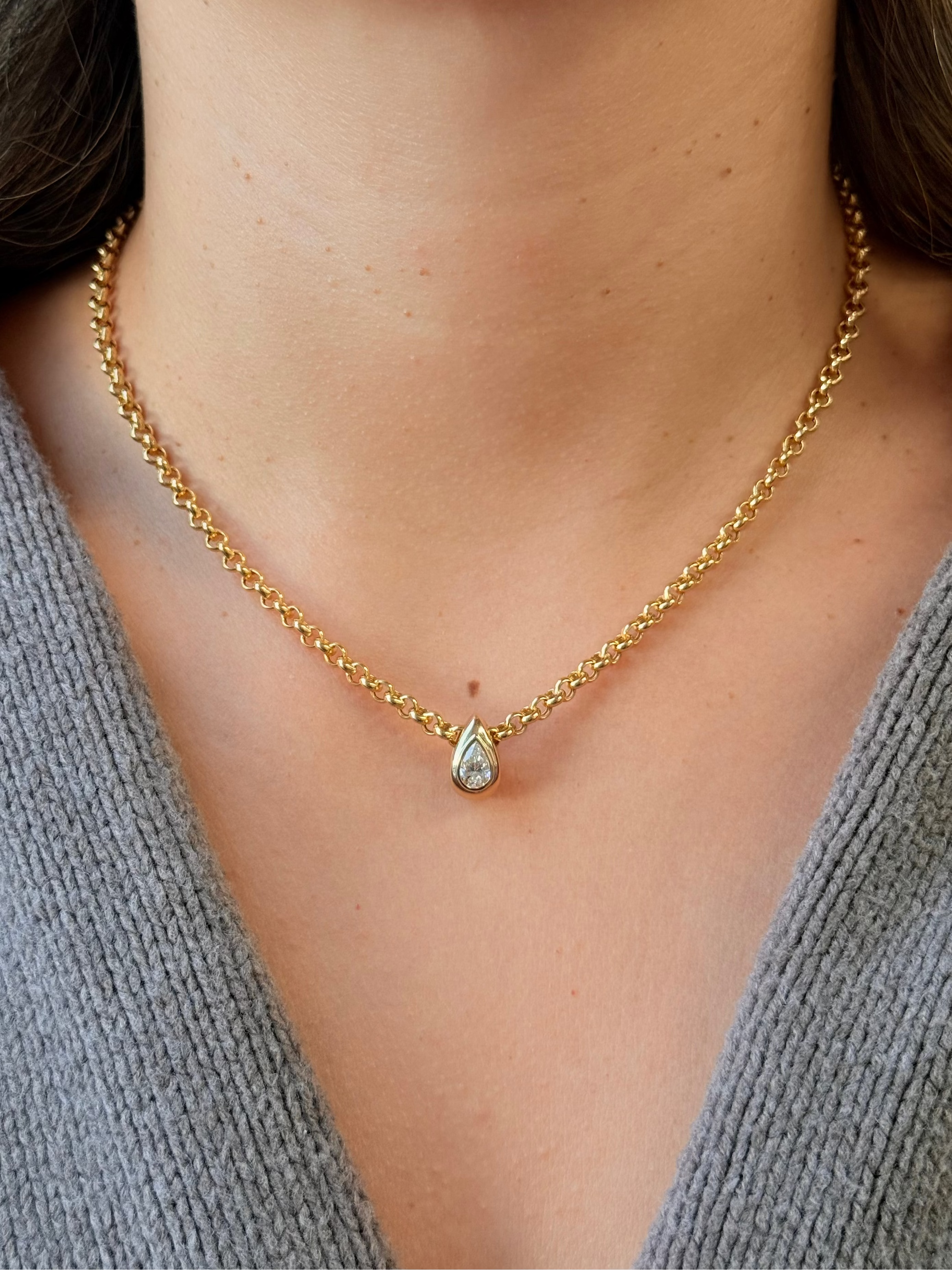 This Gold Lab Grown Bezel Pear Diamond Spacer features a pear-cut lab-grown diamond set in 14k Yellow Gold.