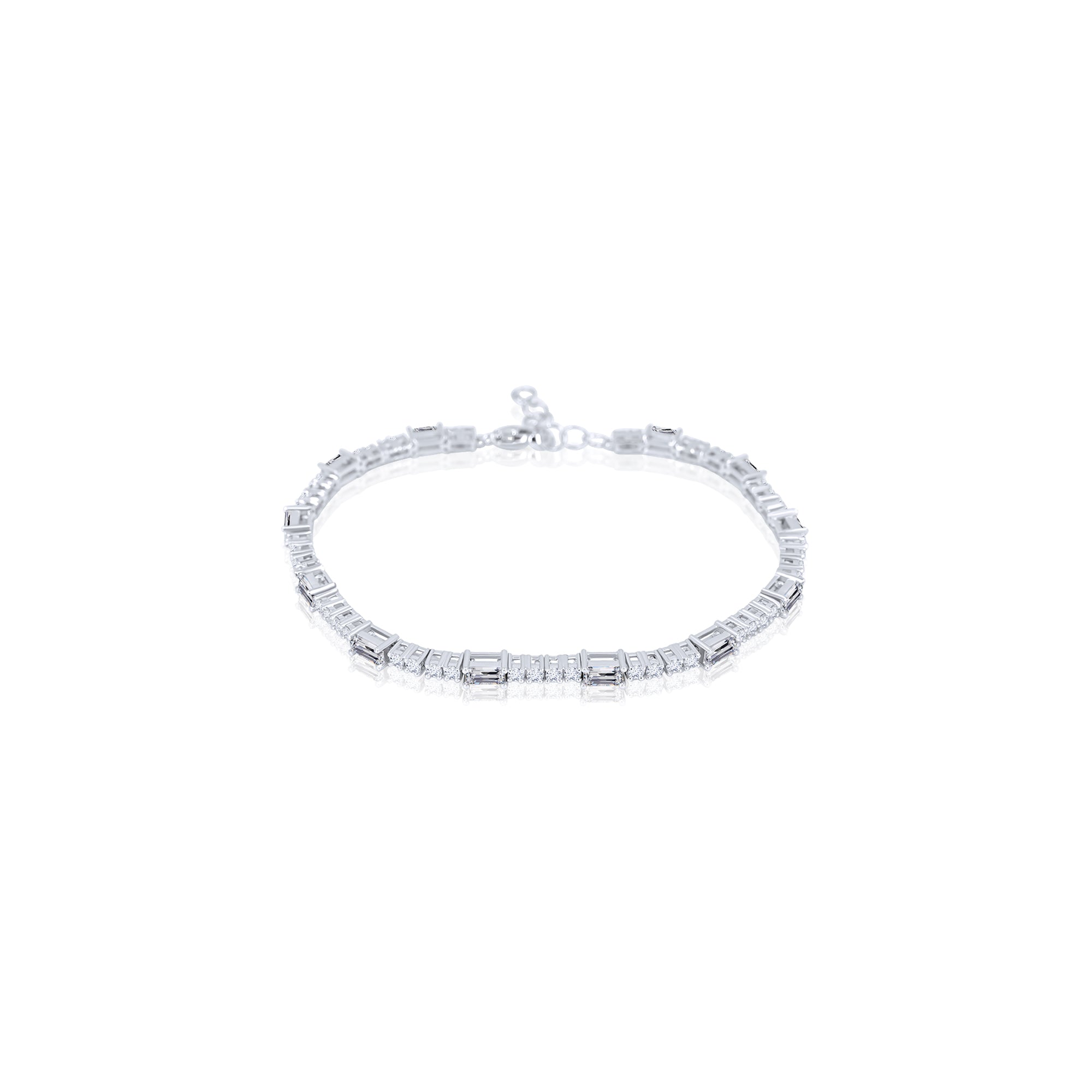 This Gold Lab Grown Diamond Multi Baguette Tennis Bracelet features emerald-cut lab-grown diamonds set in 14k White Gold.