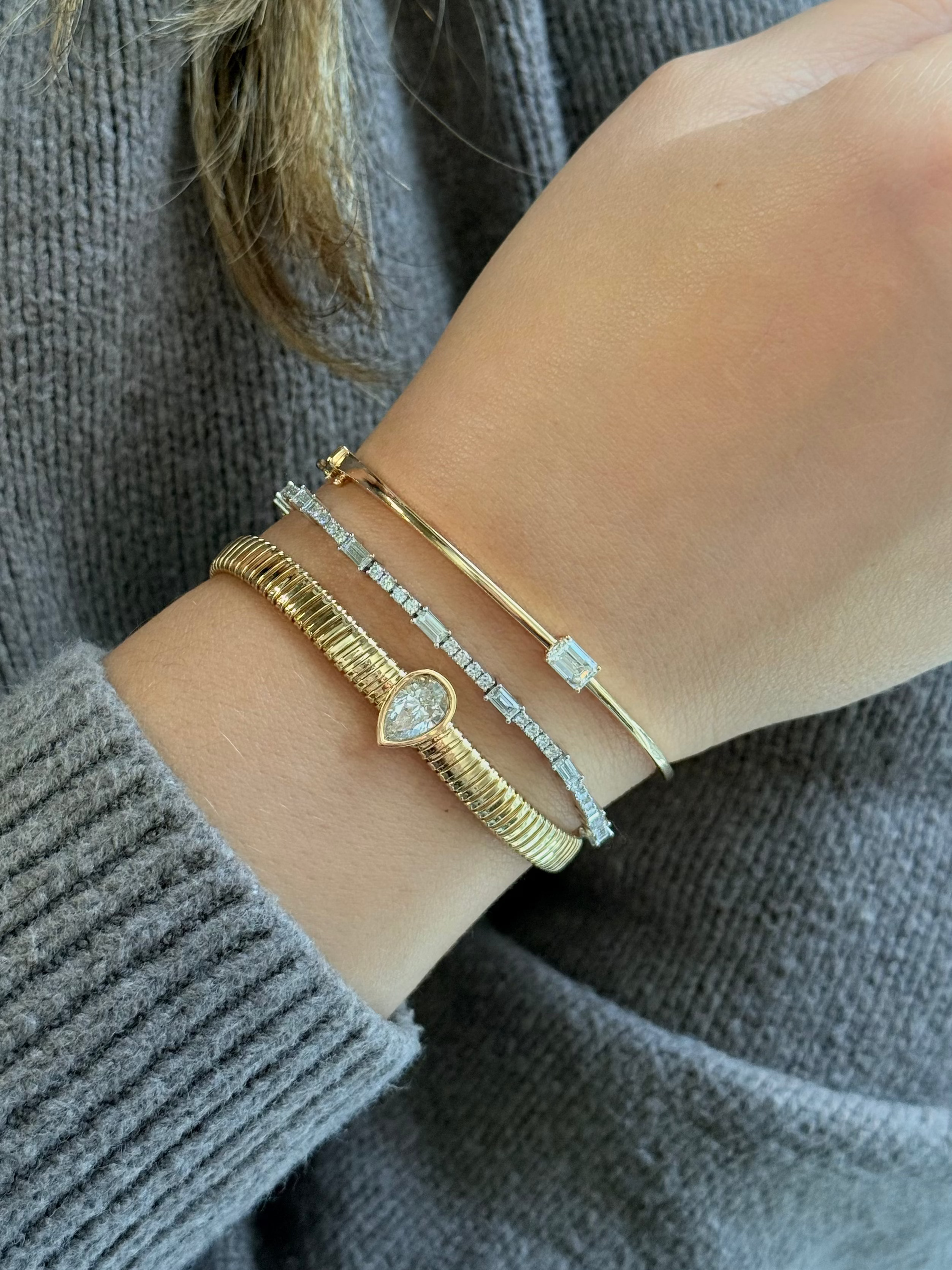 Styling: A modern take on the classic tennis bracelet — bold enough to wear solo, timeless enough to stack with your everyday wrist layers.