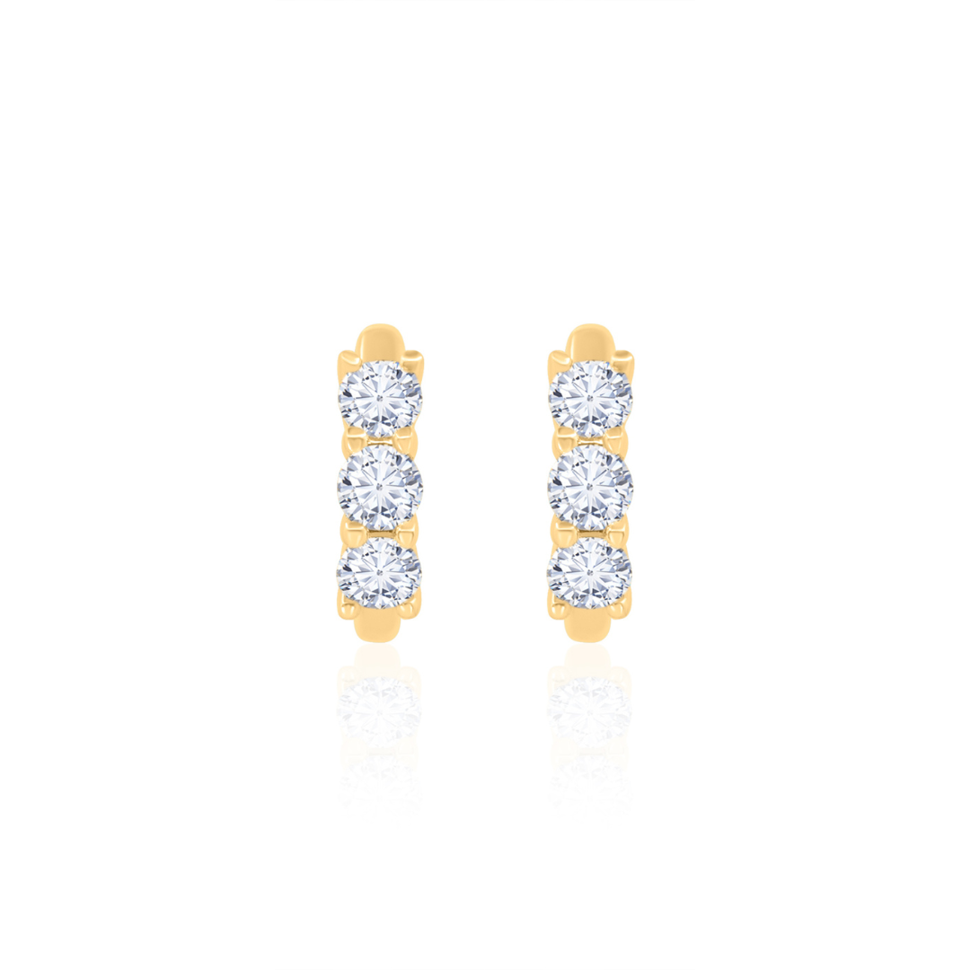 This Gold Lab Grown Triple Diamond Huggie features three brilliant lab-grown diamonds set in 14k Yellow Gold.