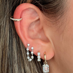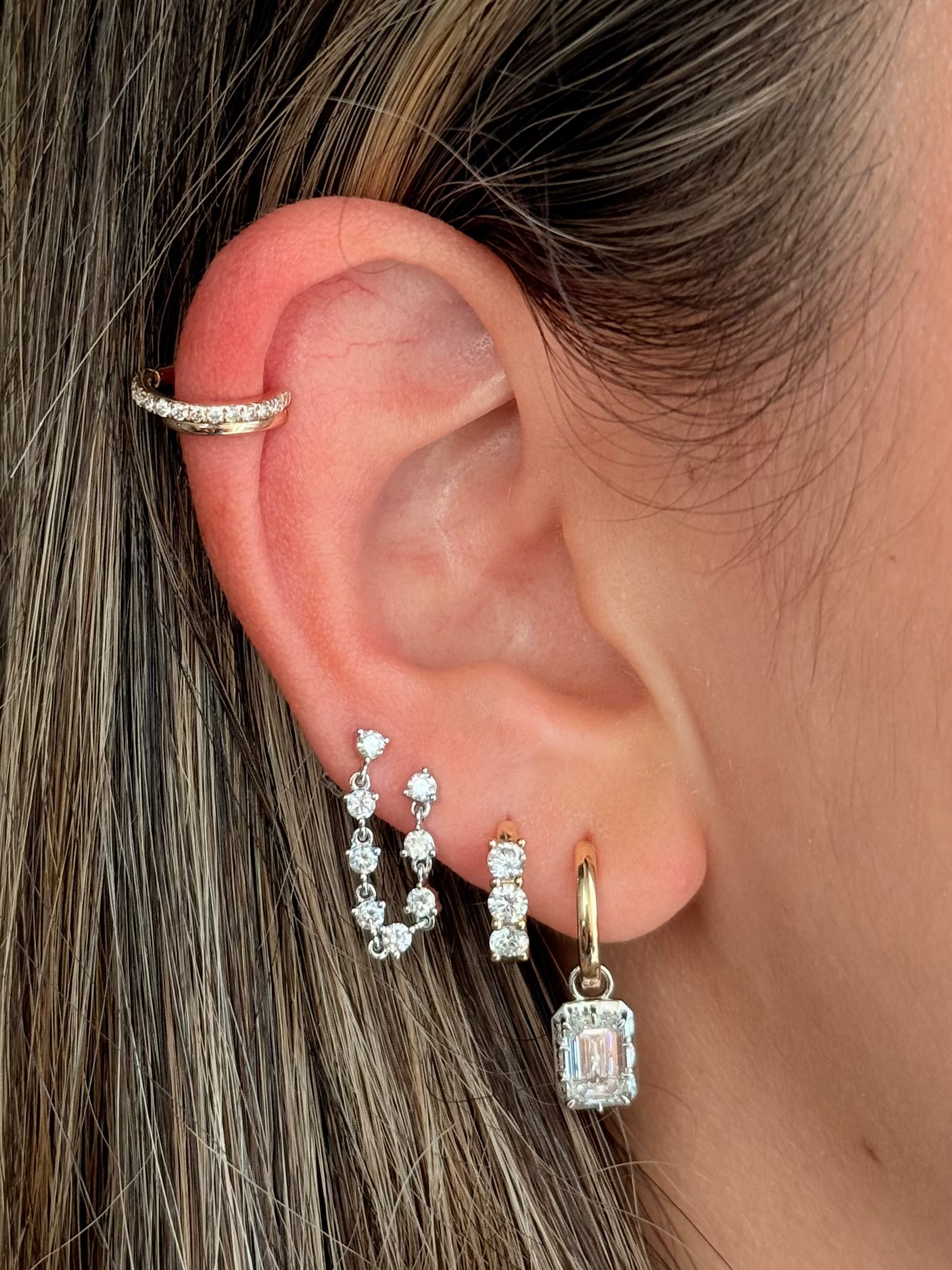 Styling: A timeless everyday huggie — wear it solo for a clean sparkle or stack it with textured gold hoops for a layered shine.